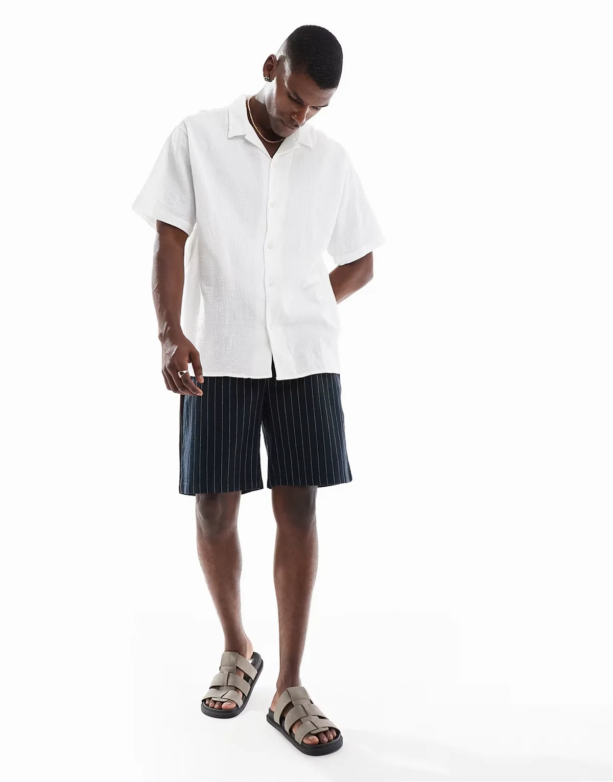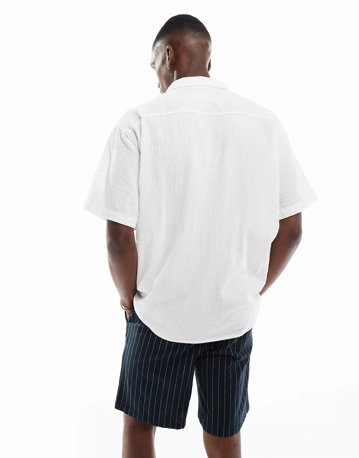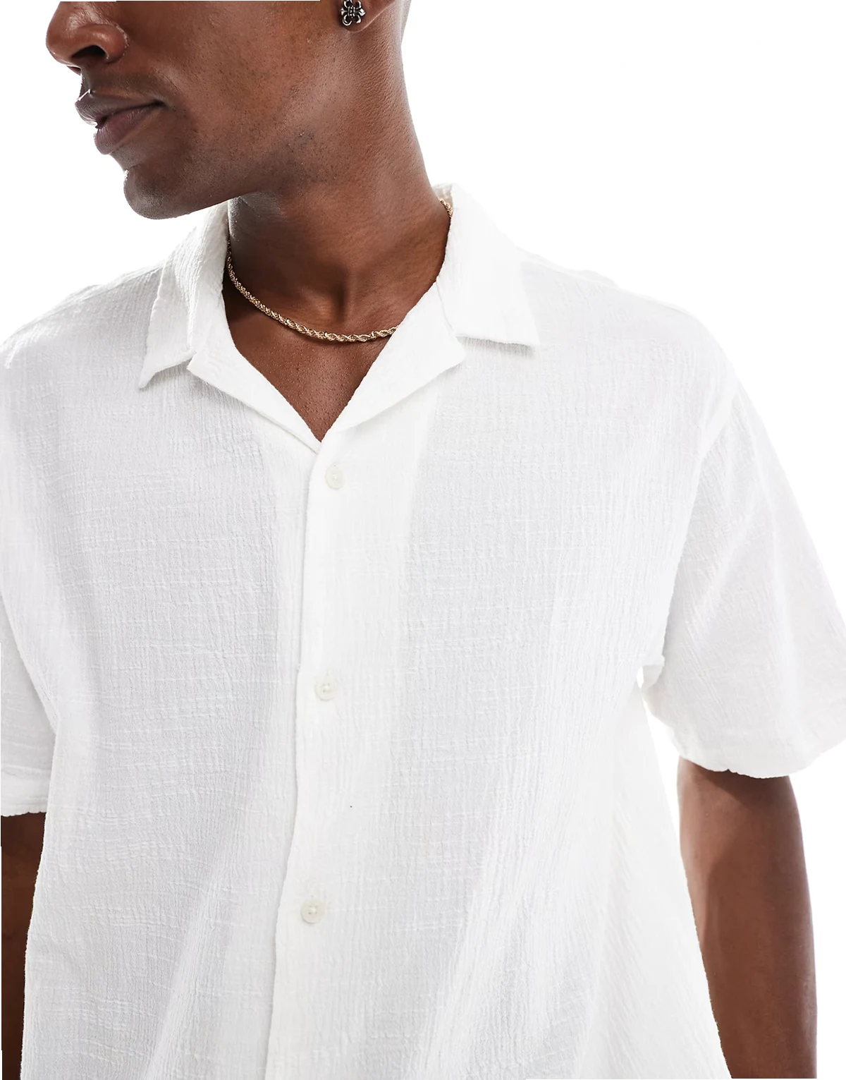 camp collar shirt in crinkle texture white