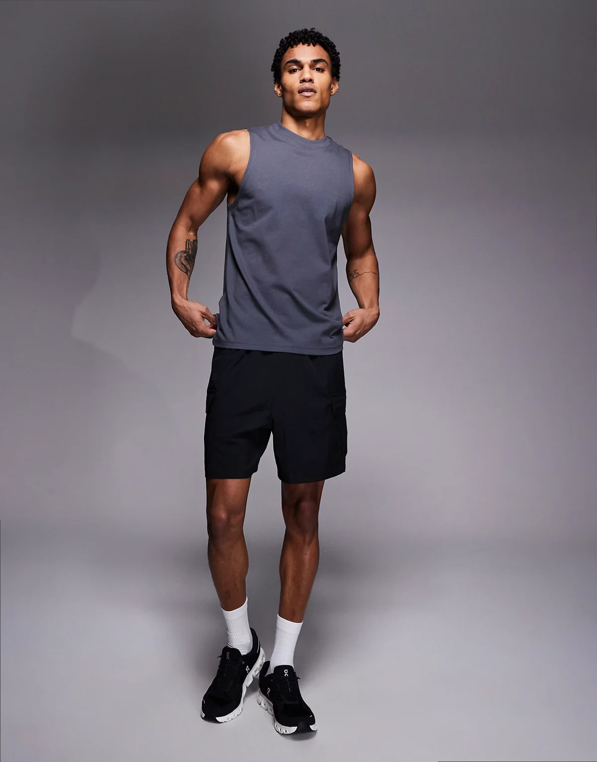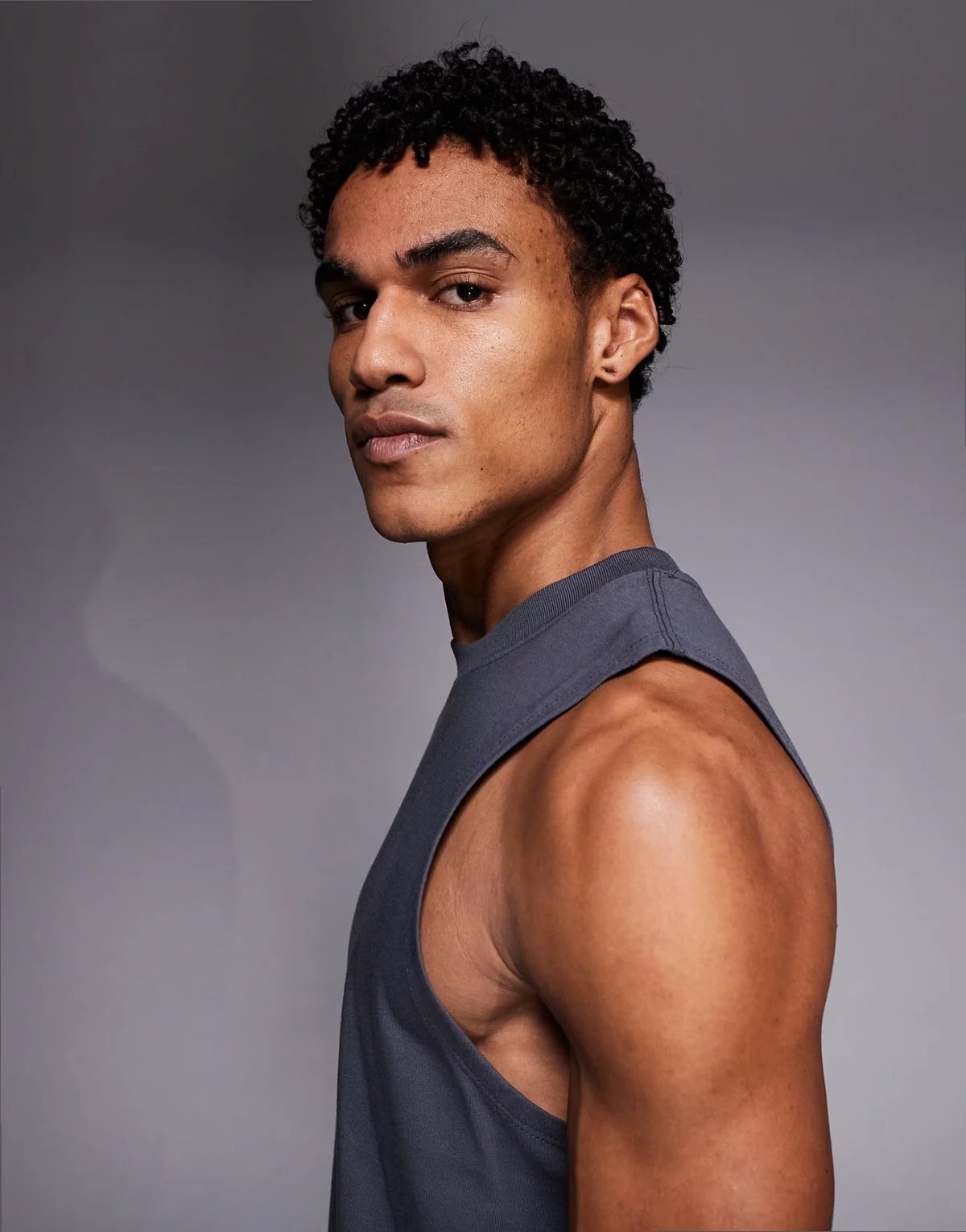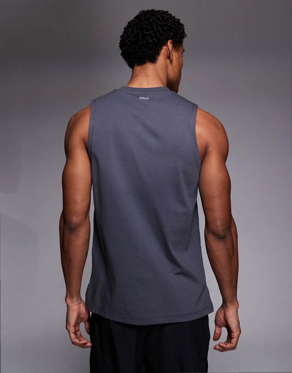 Icon dropped armholes cotton training tank top with quick dry finish in charcoal