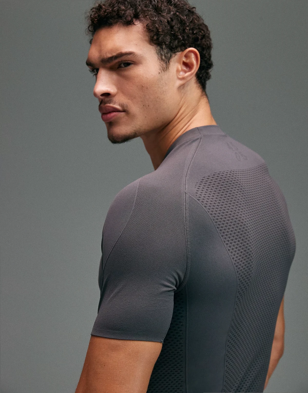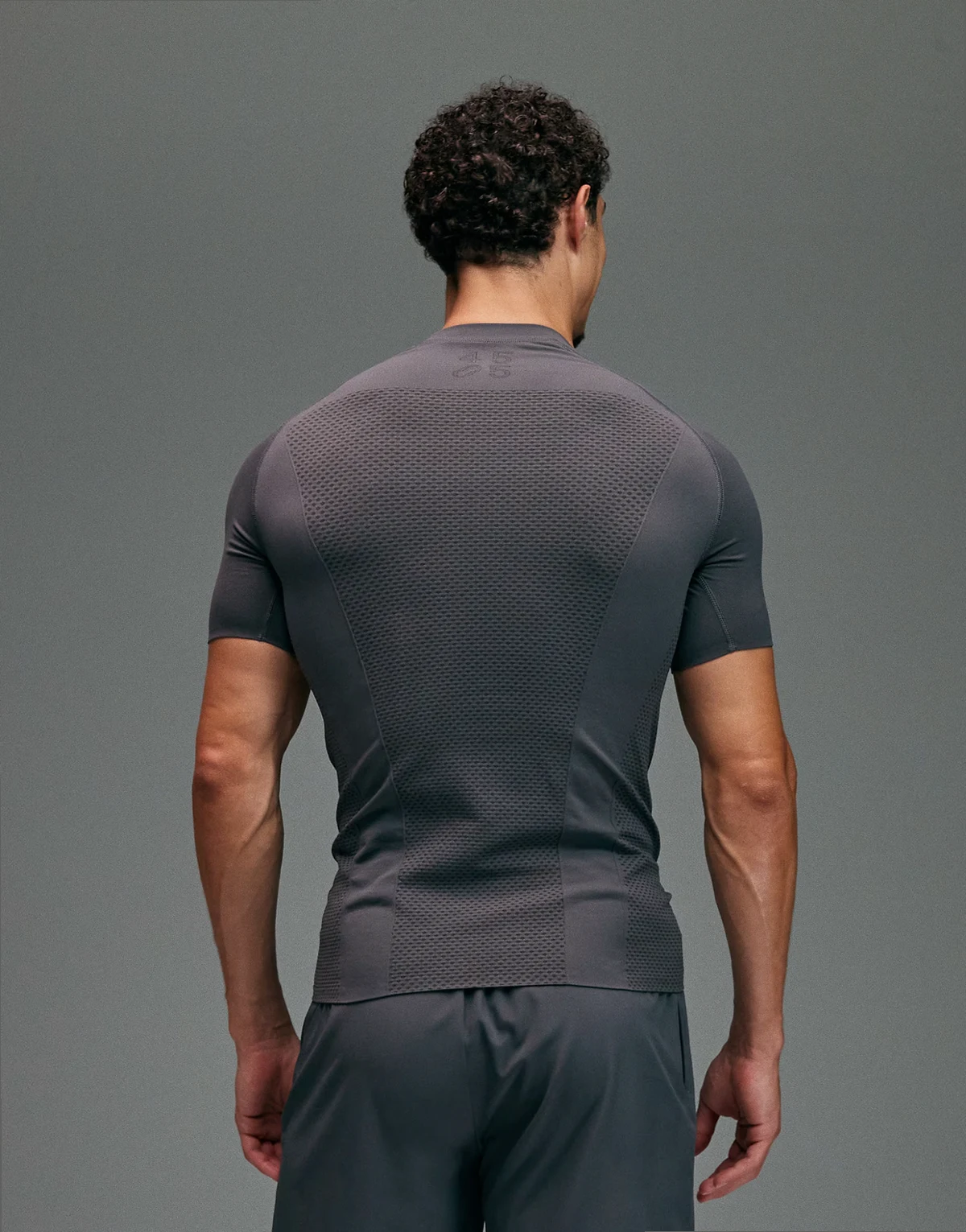 seamless physique defining muscle fit compression base layer T-shirt in charcoal