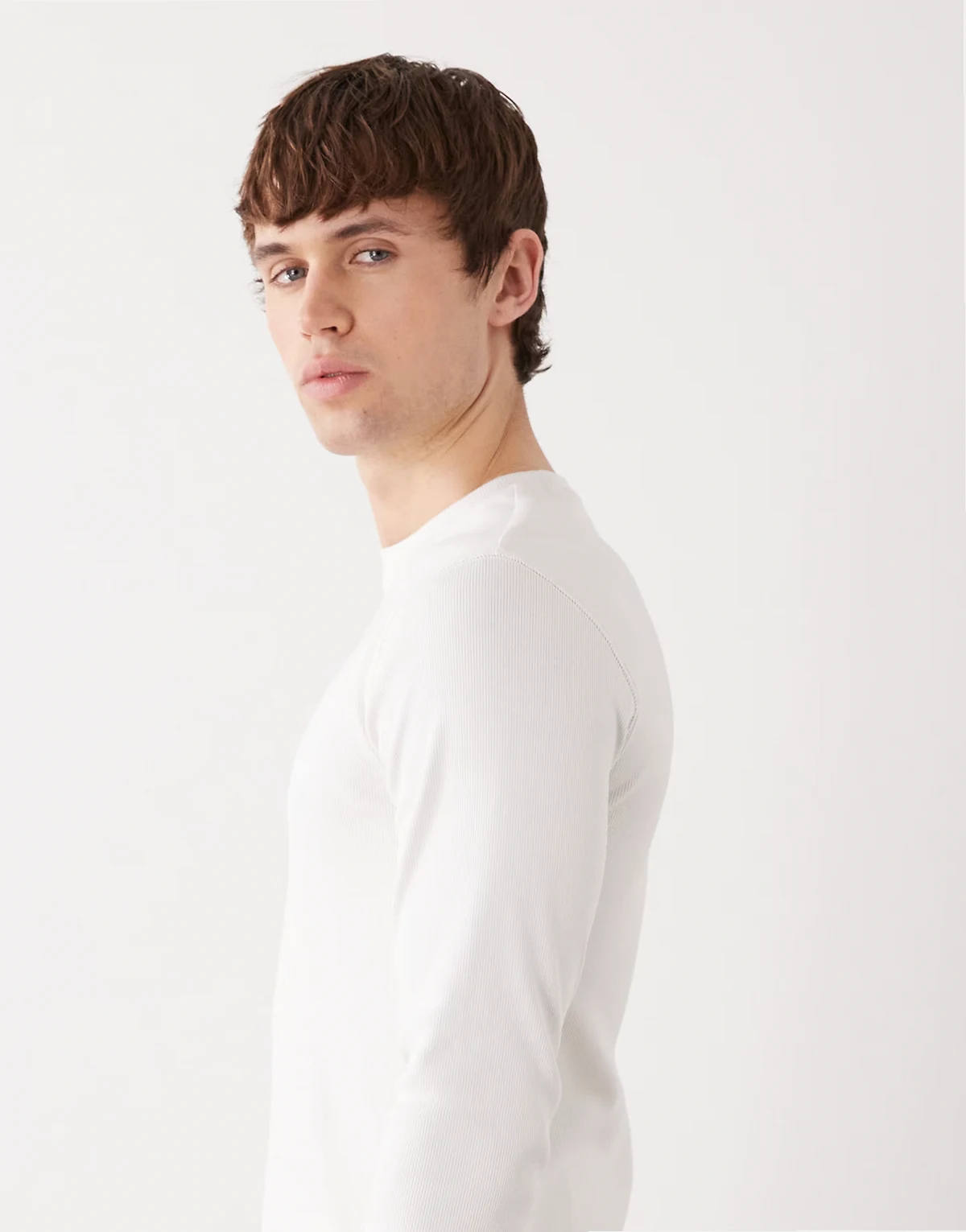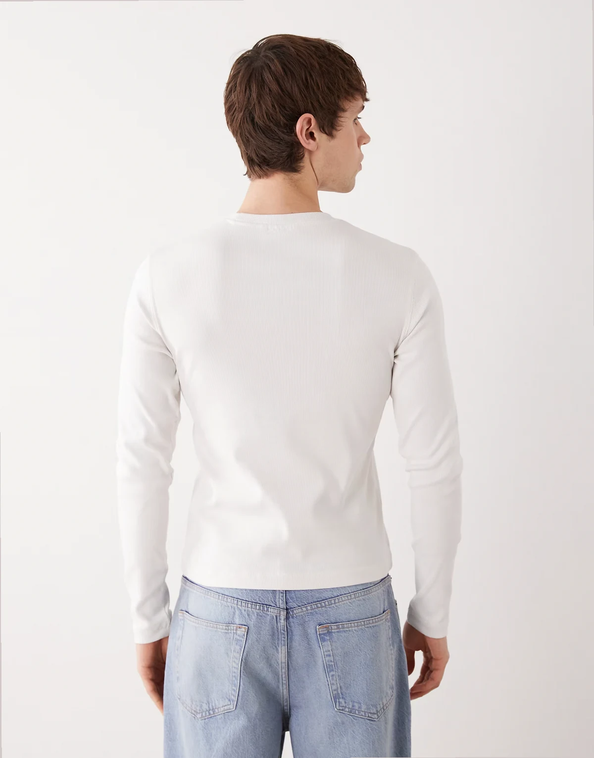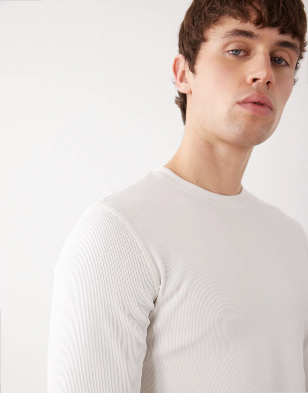 slim fit rib knit long sleeve t-shirt in off white
