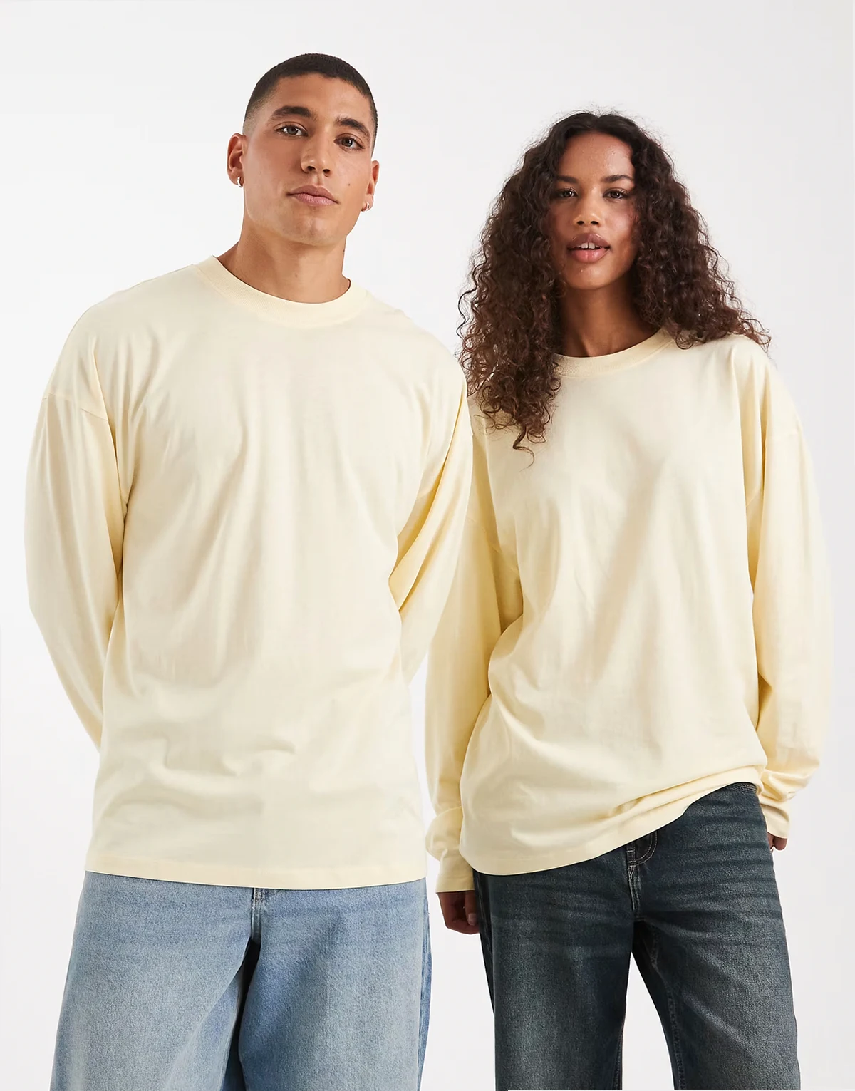 Unisex long sleeve T-shirt in butter yellow
