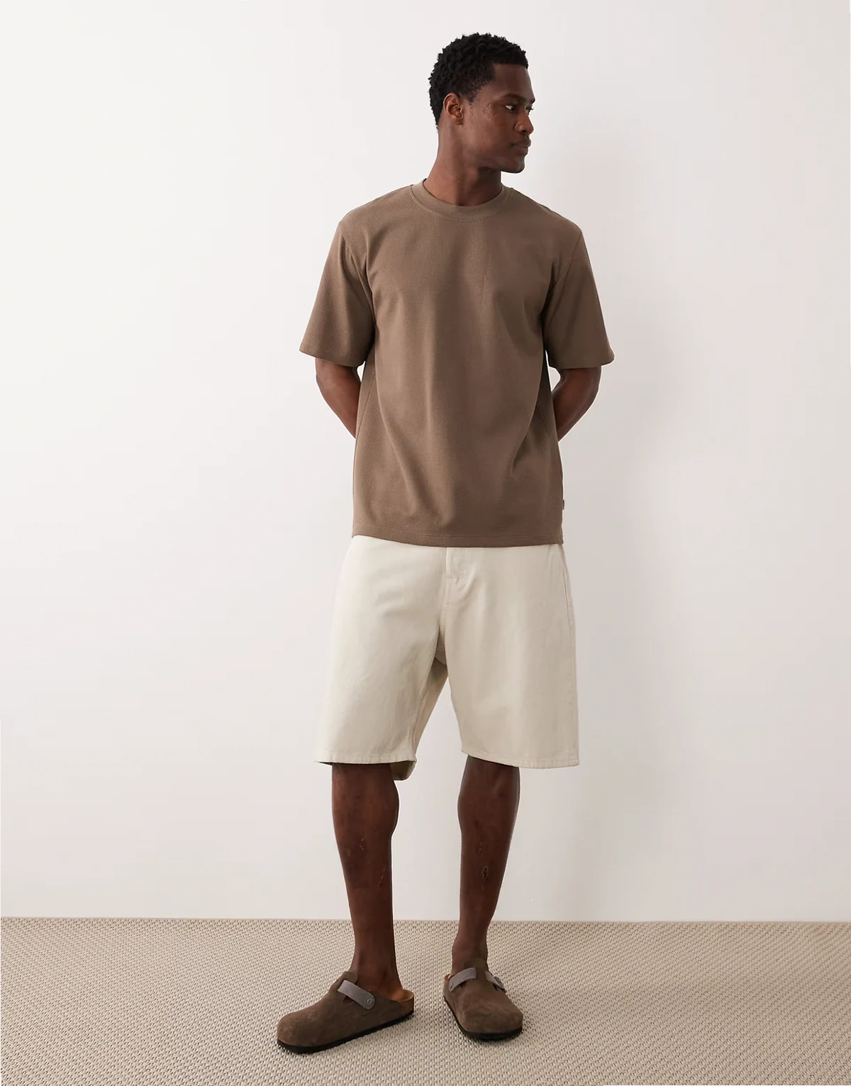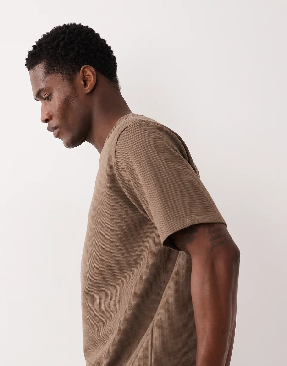 waffle knit t-shirt in light brown