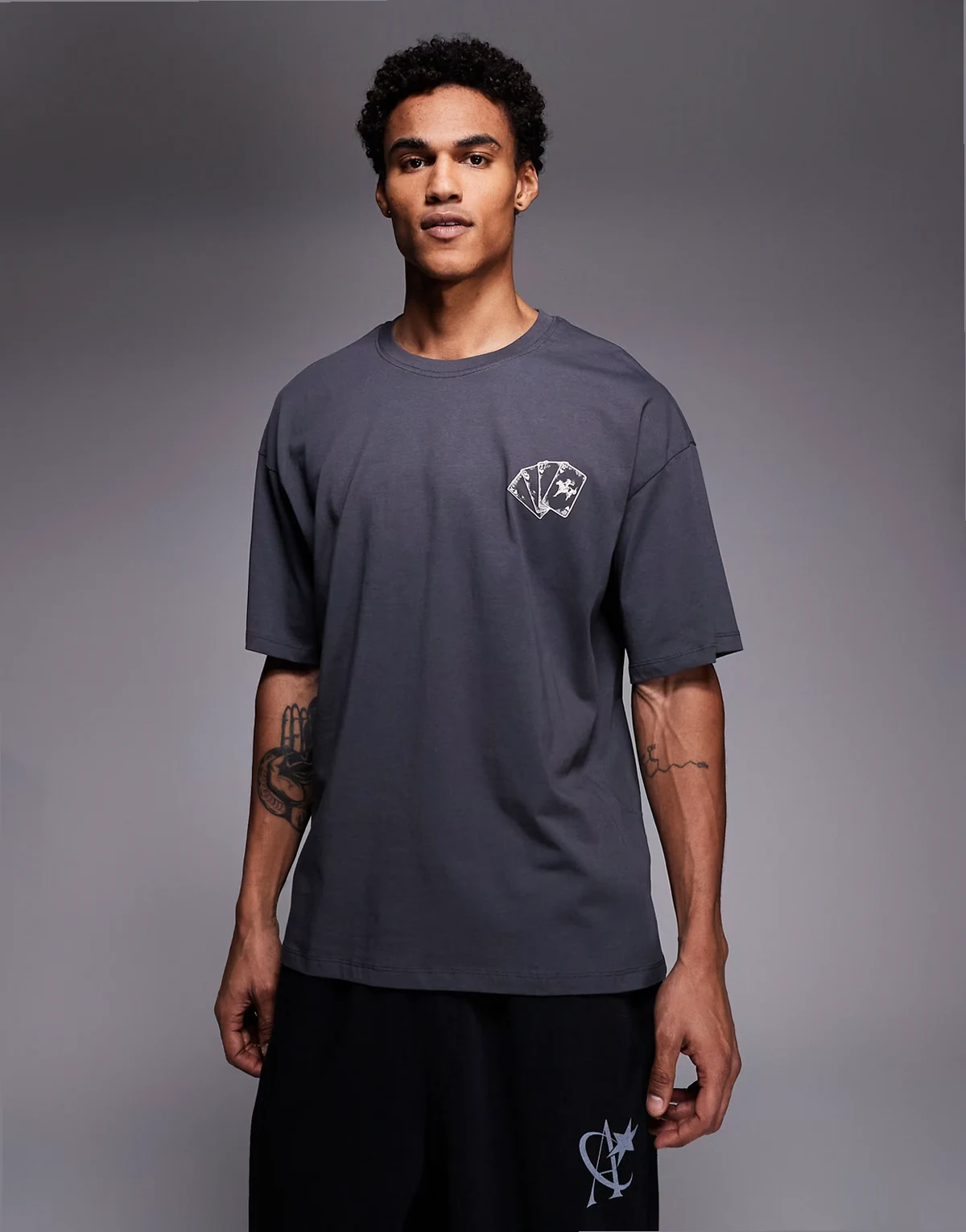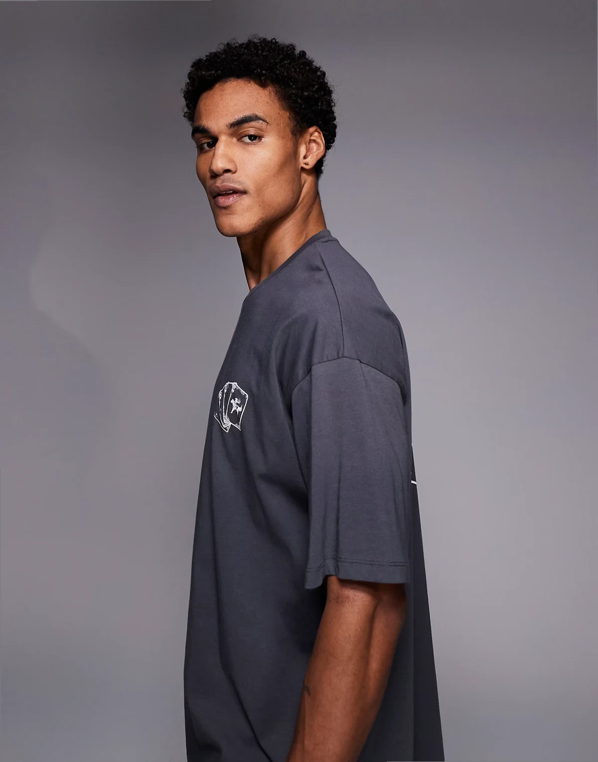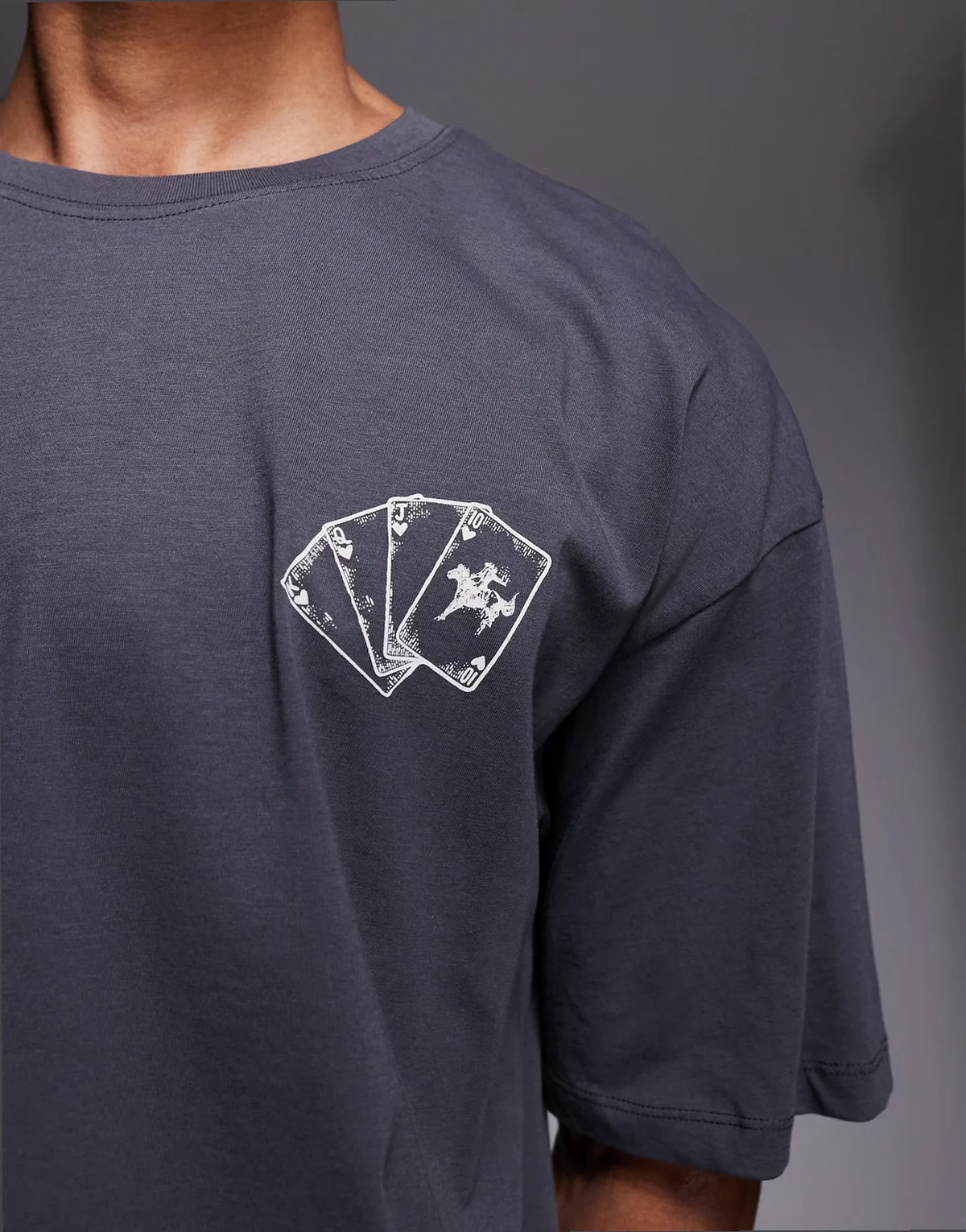 oversized T-shirt with equestrian deck back print in gray