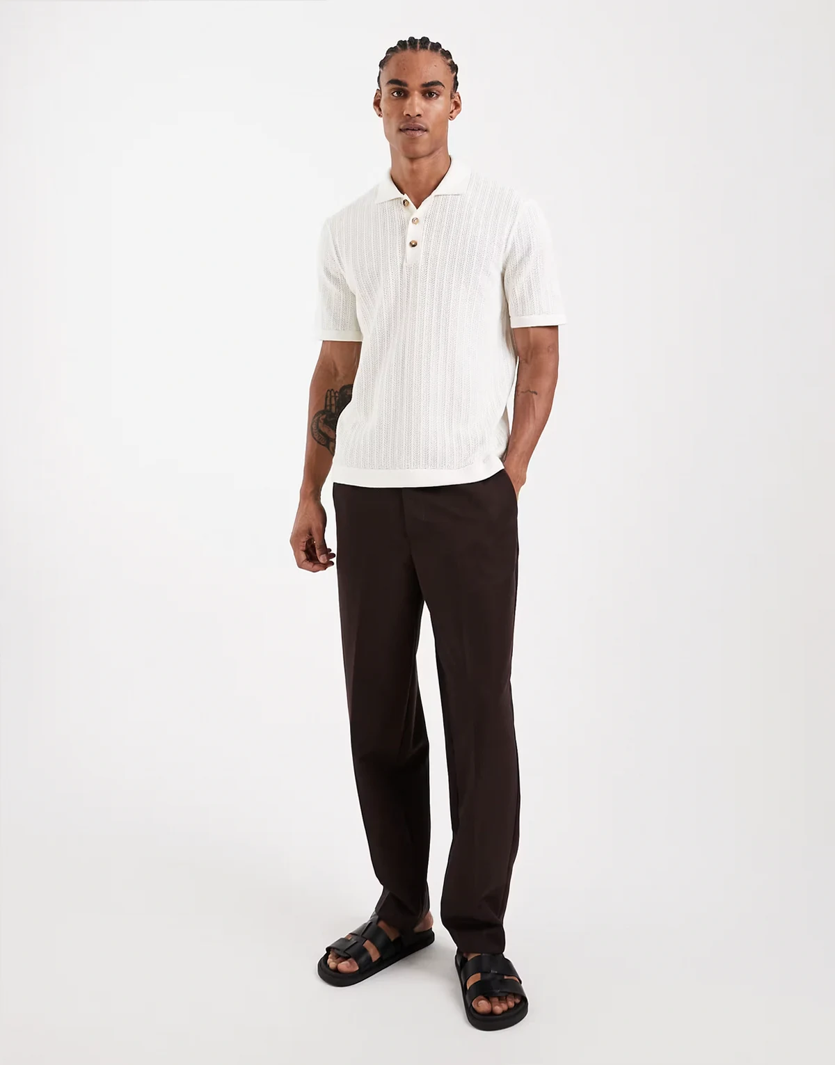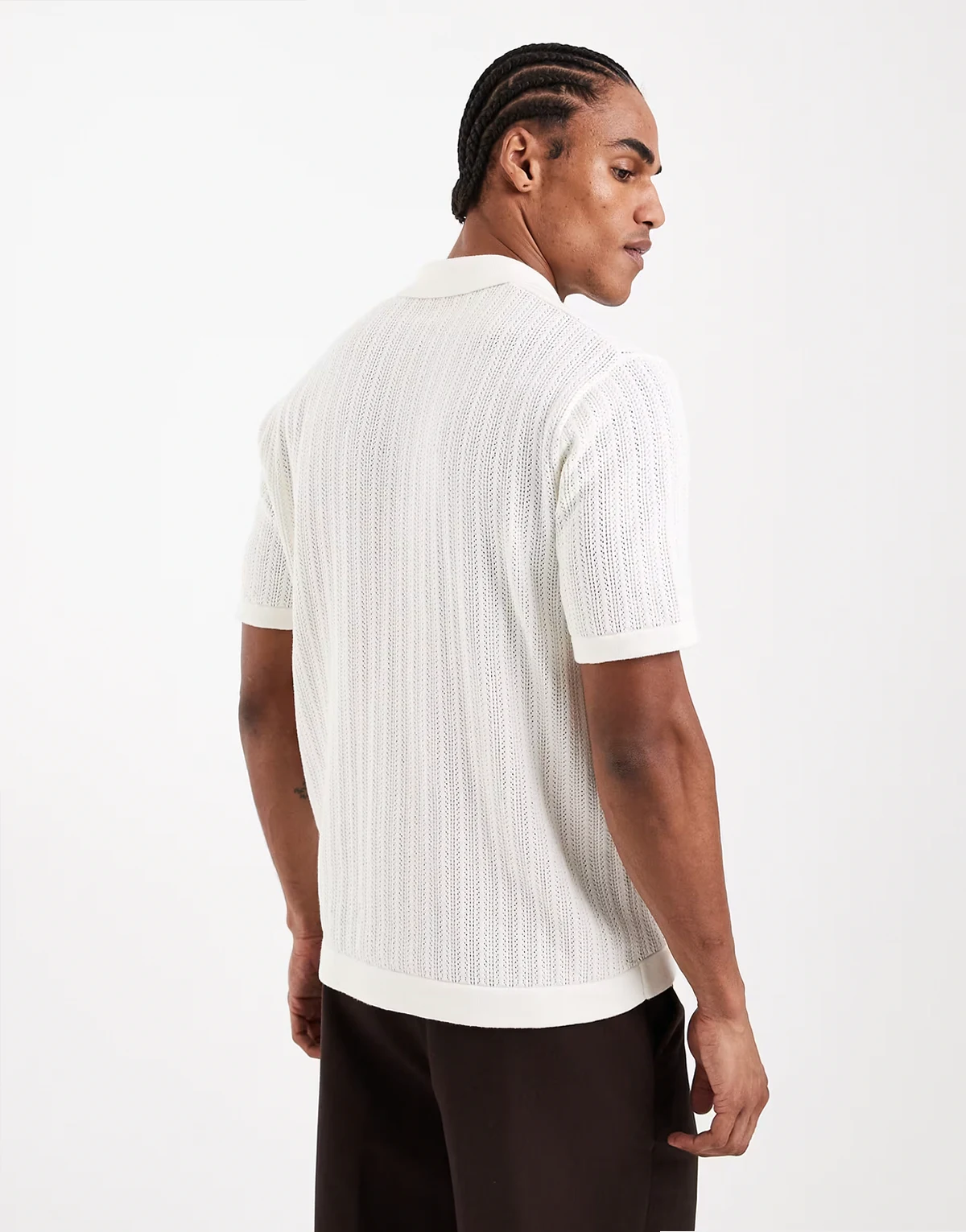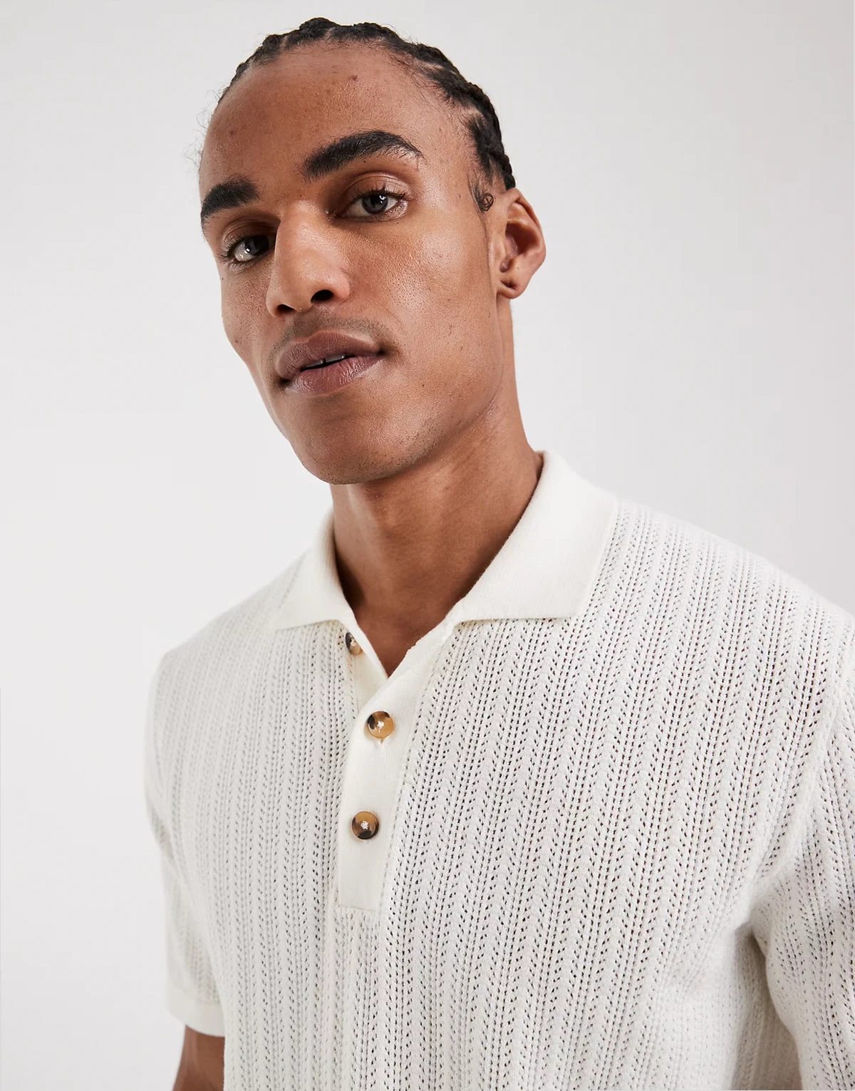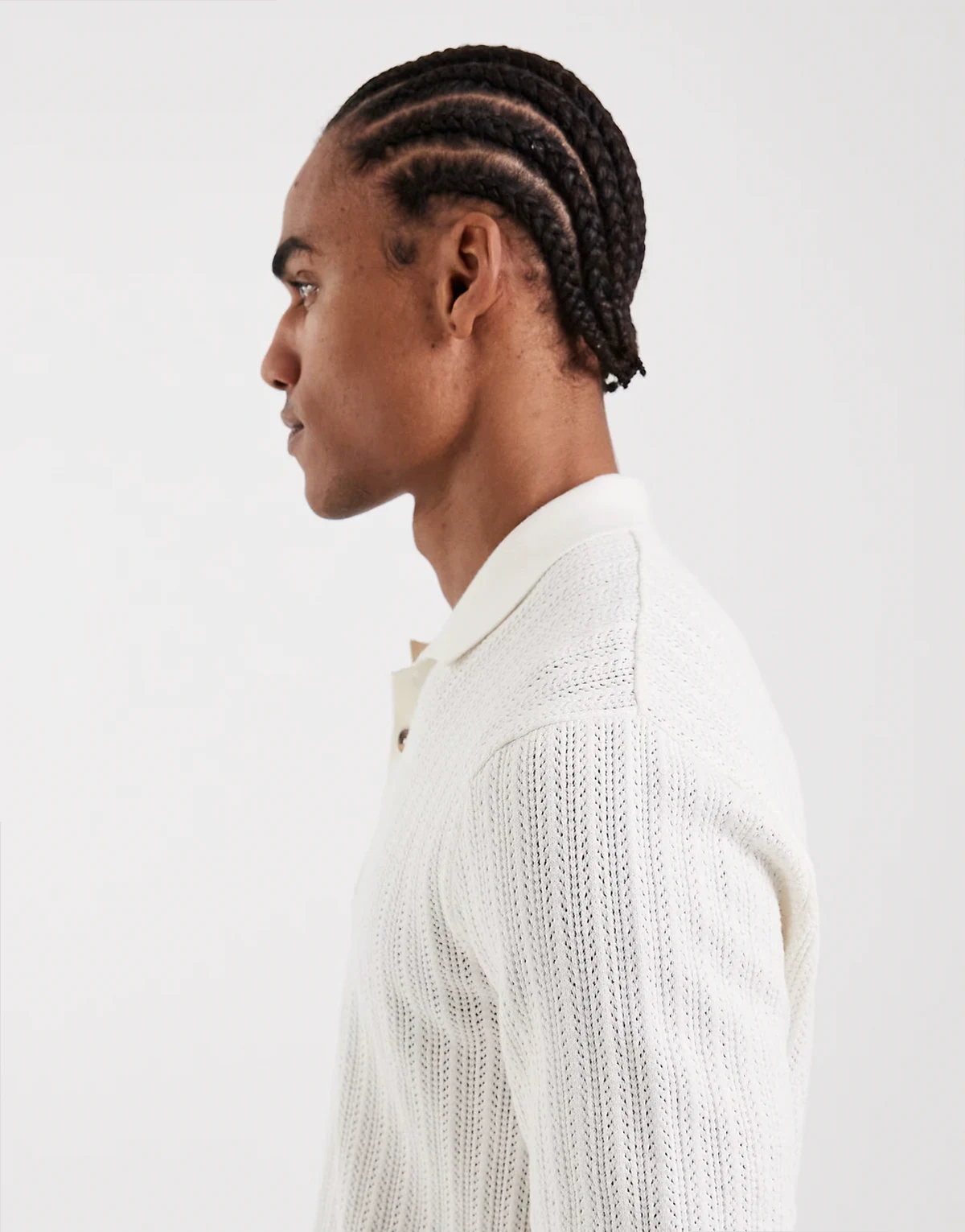 open knit polo shirt in cream