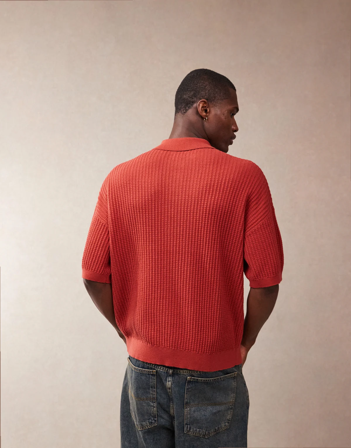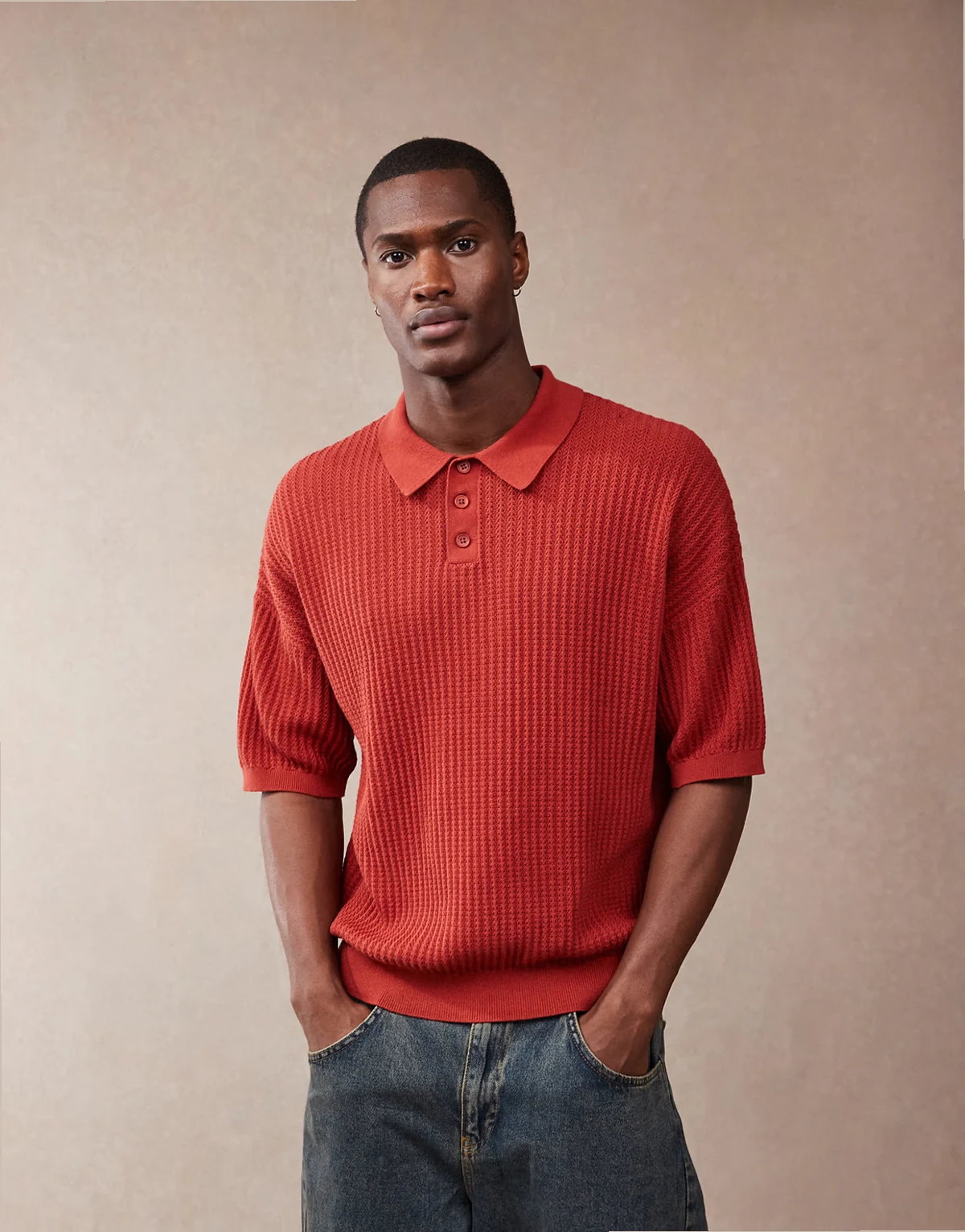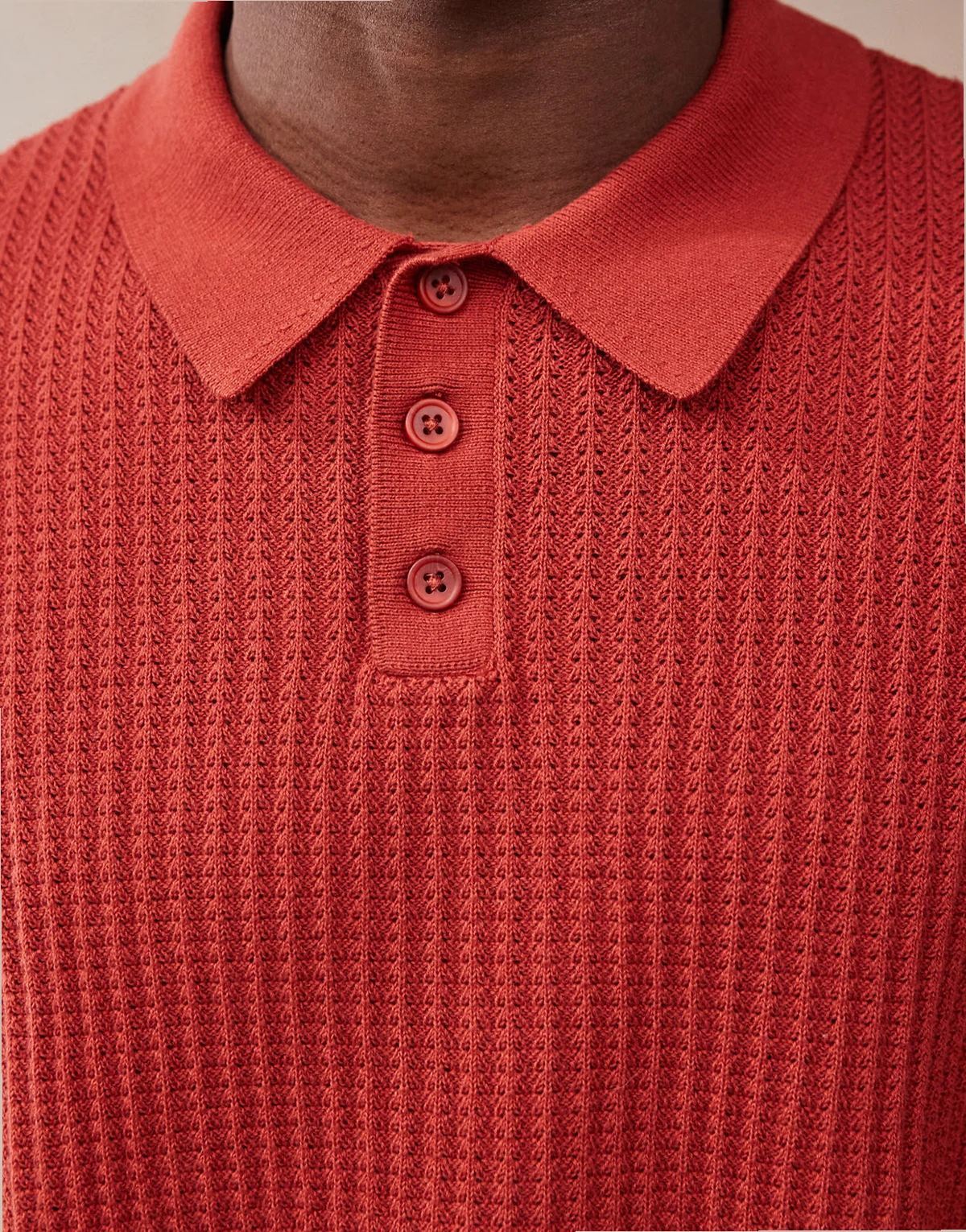 relaxed textured knit polo shirt in red