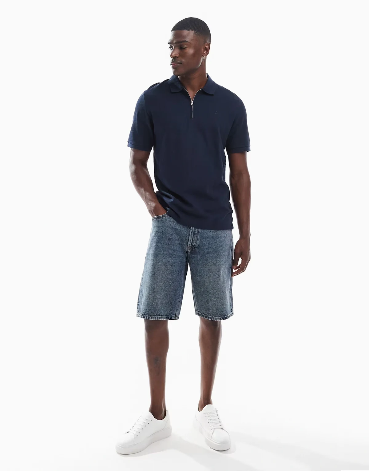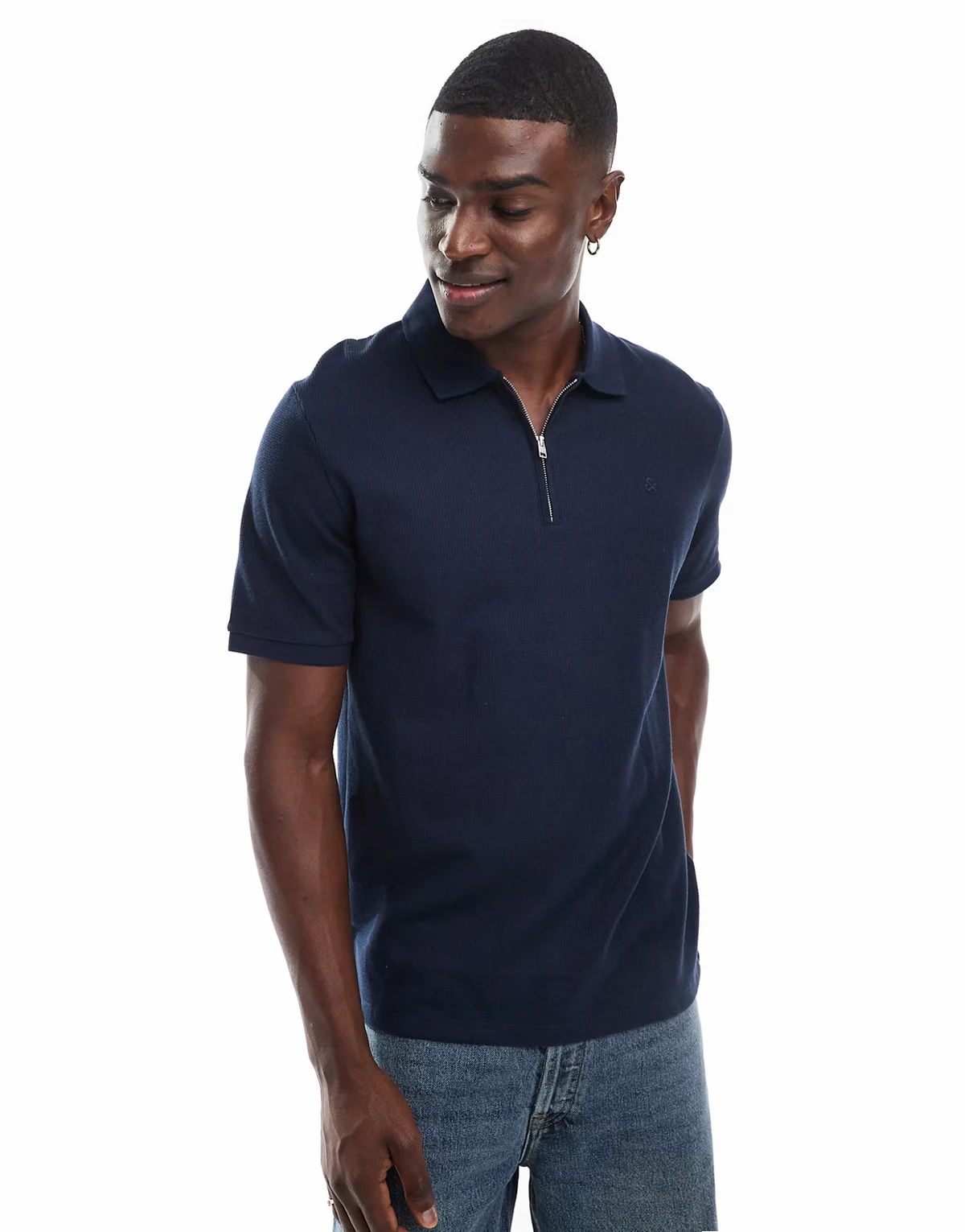 zip polo shirt in navy