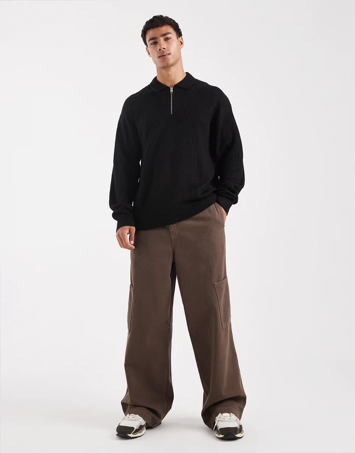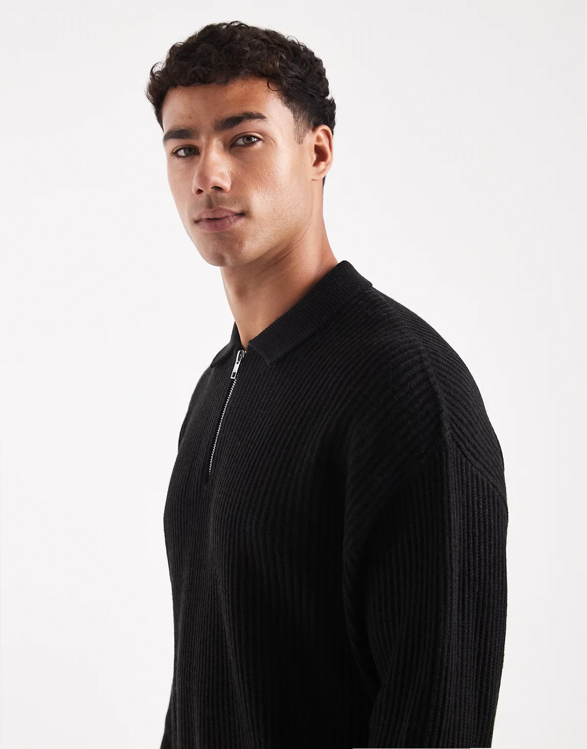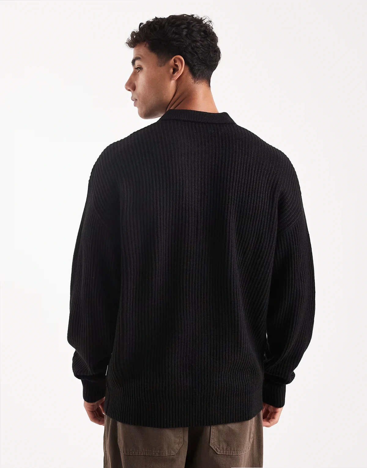 oversize knit polo in black