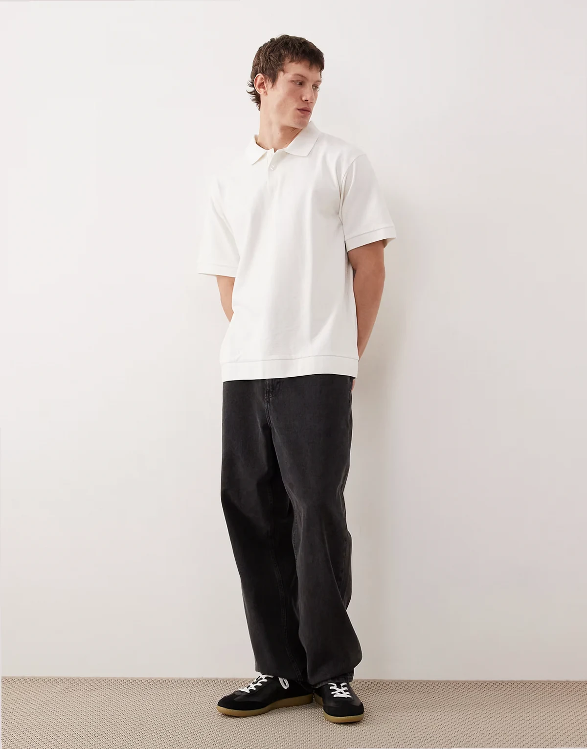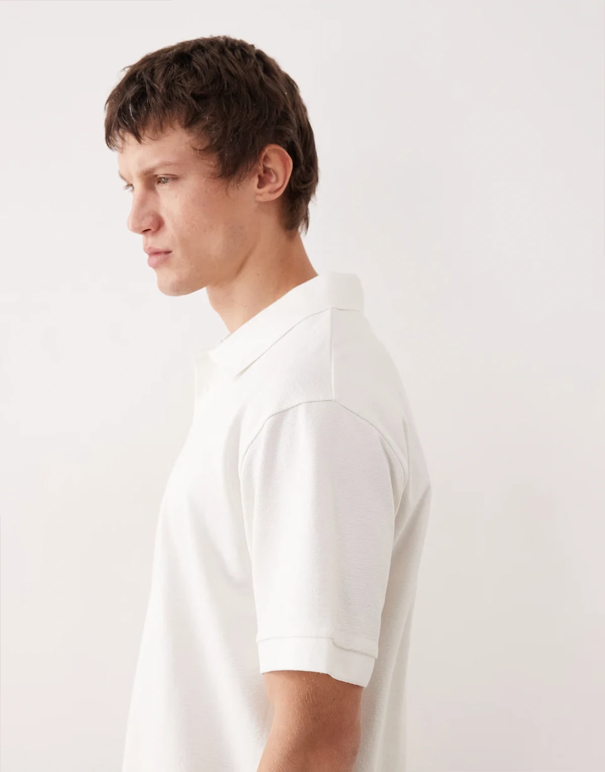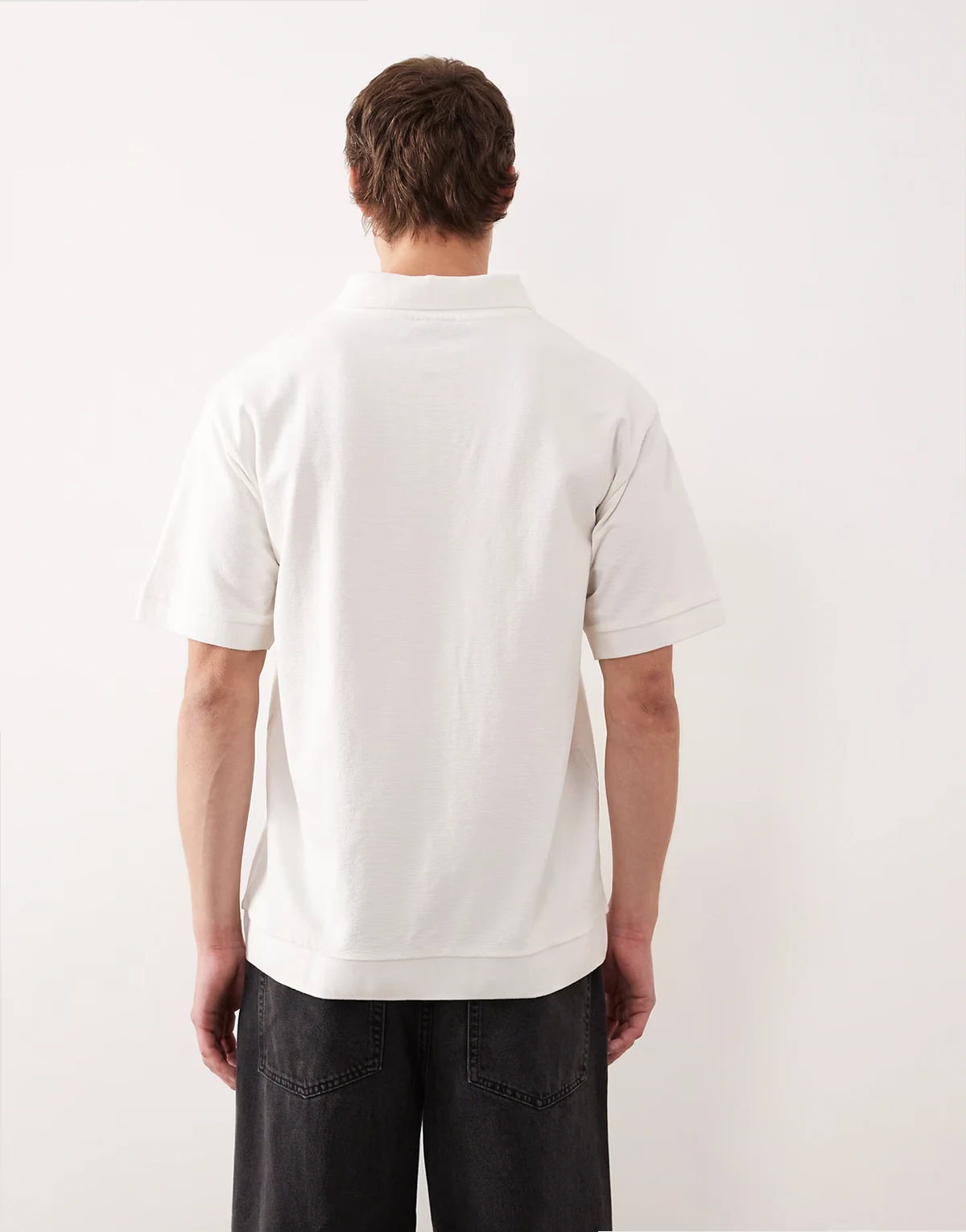 relaxed polo with cuffed hem in cream boucle