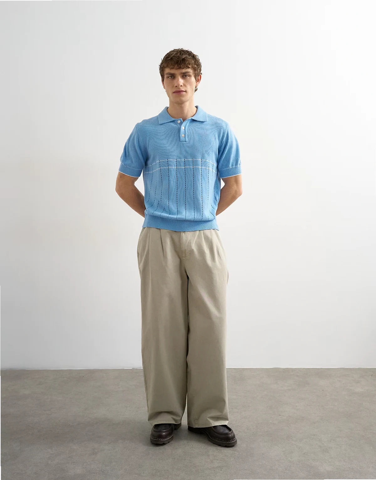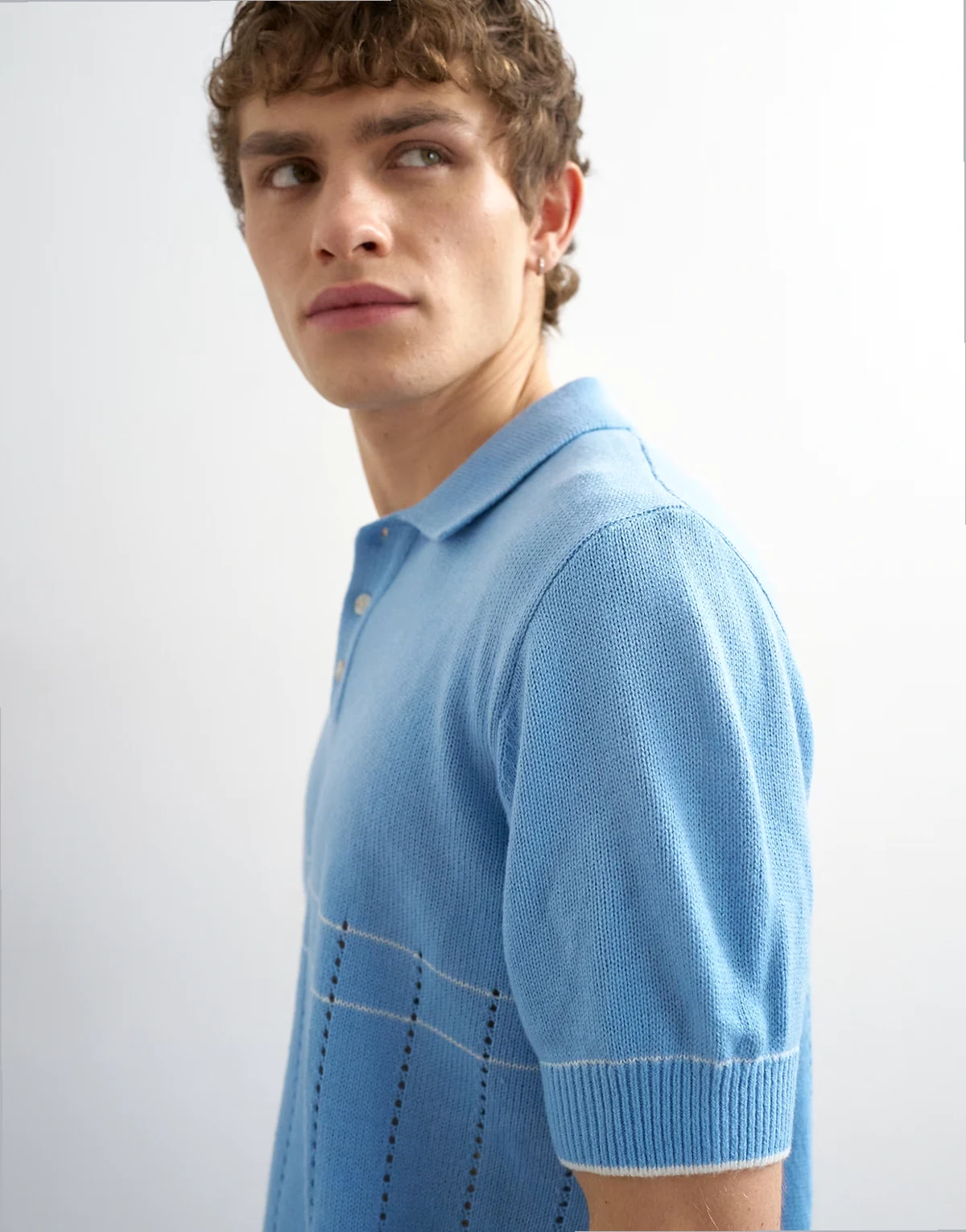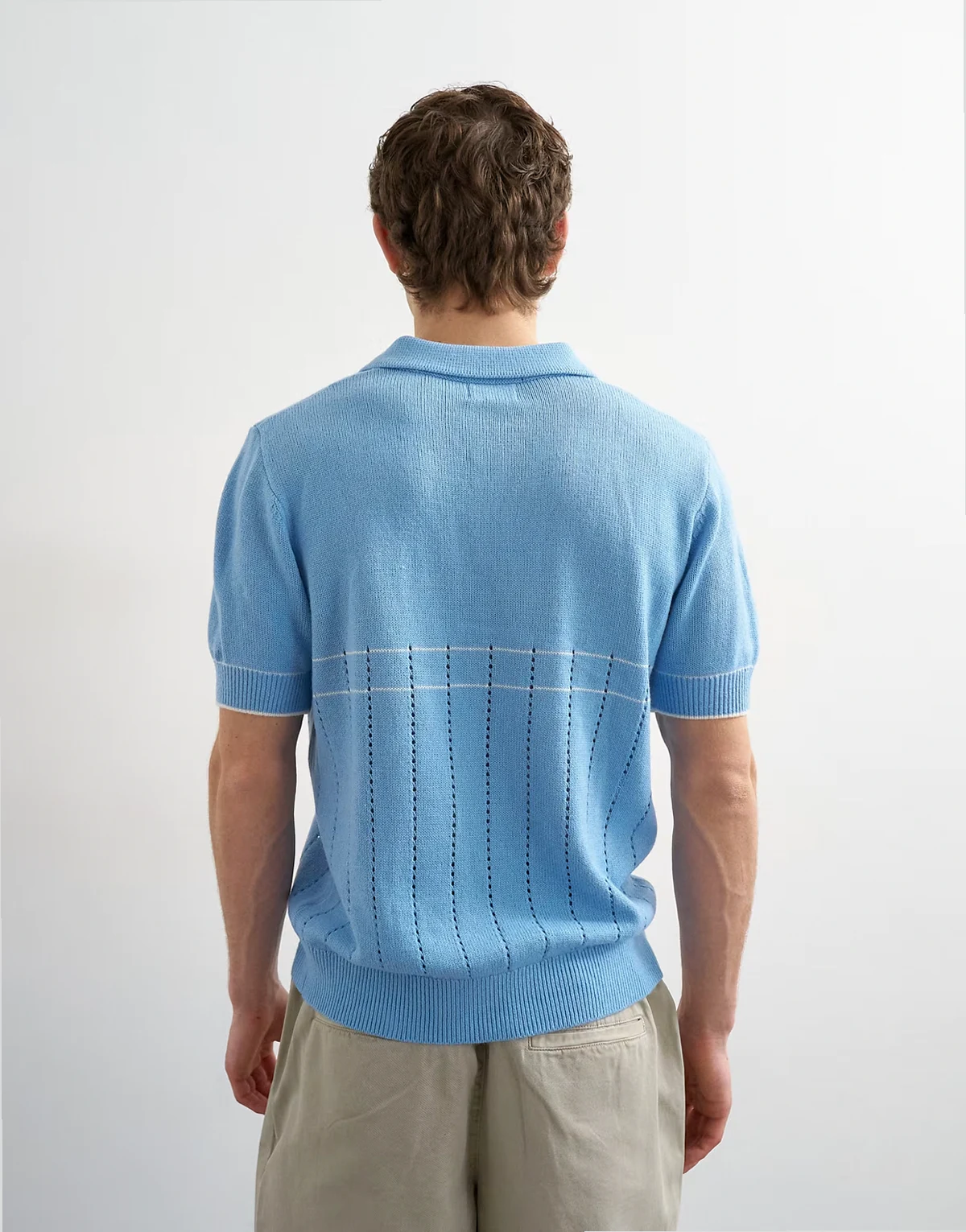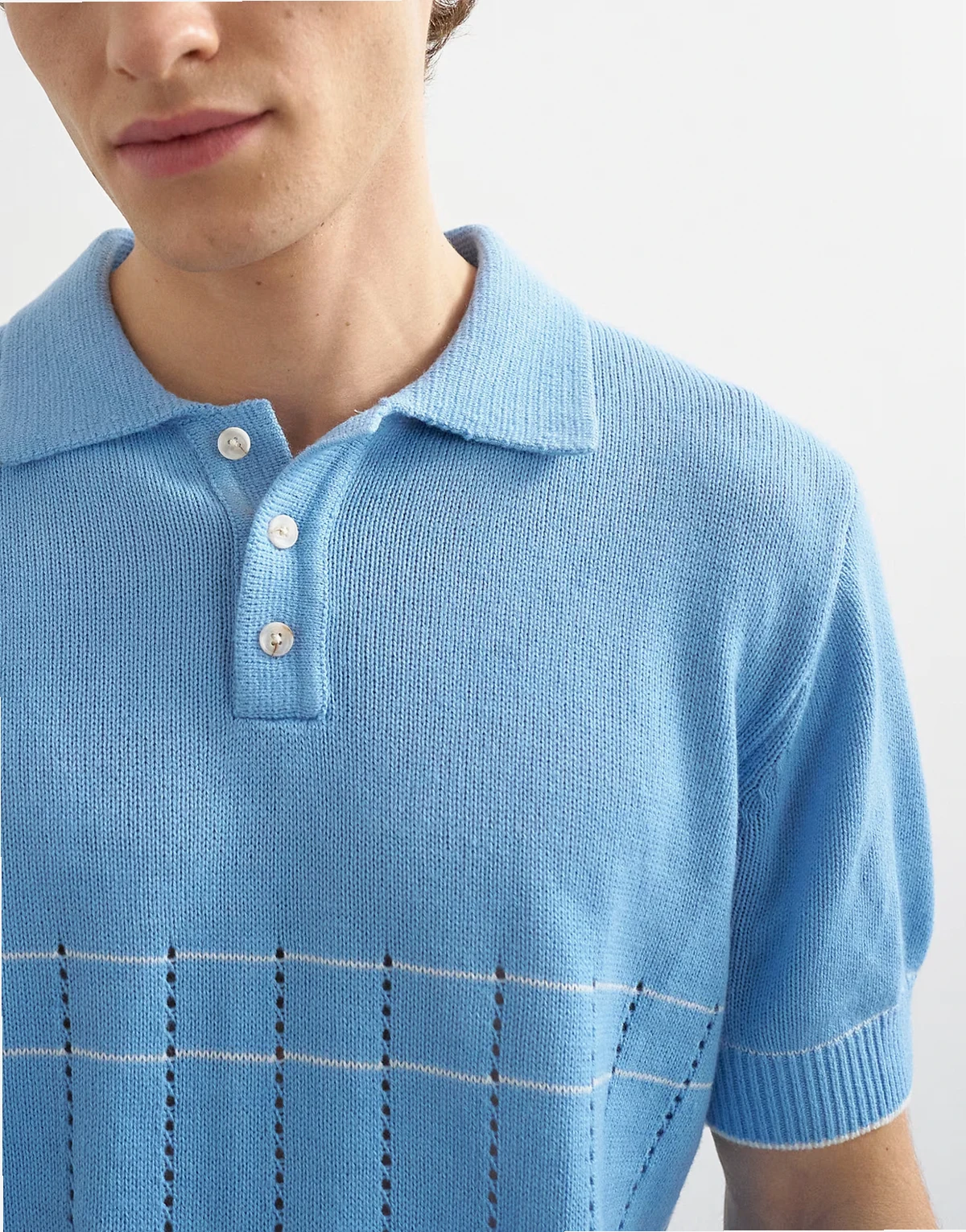 classic fit pointelle knit polo in light blue