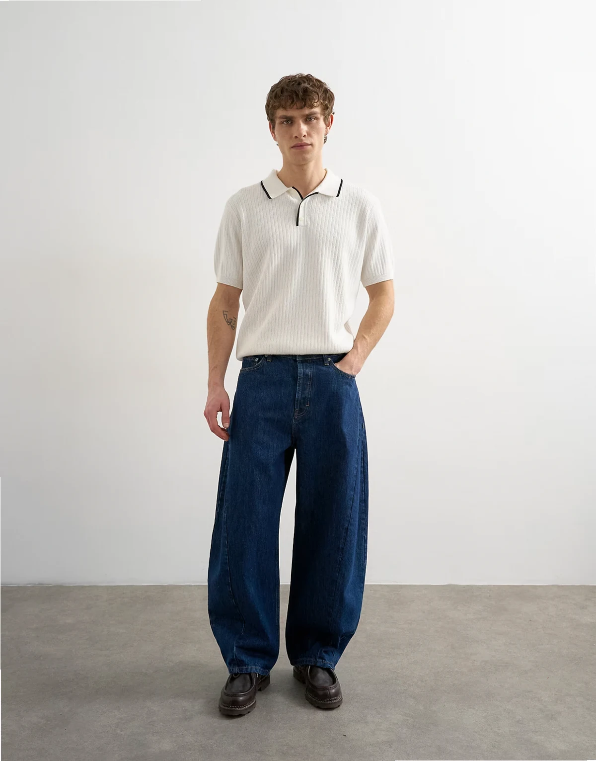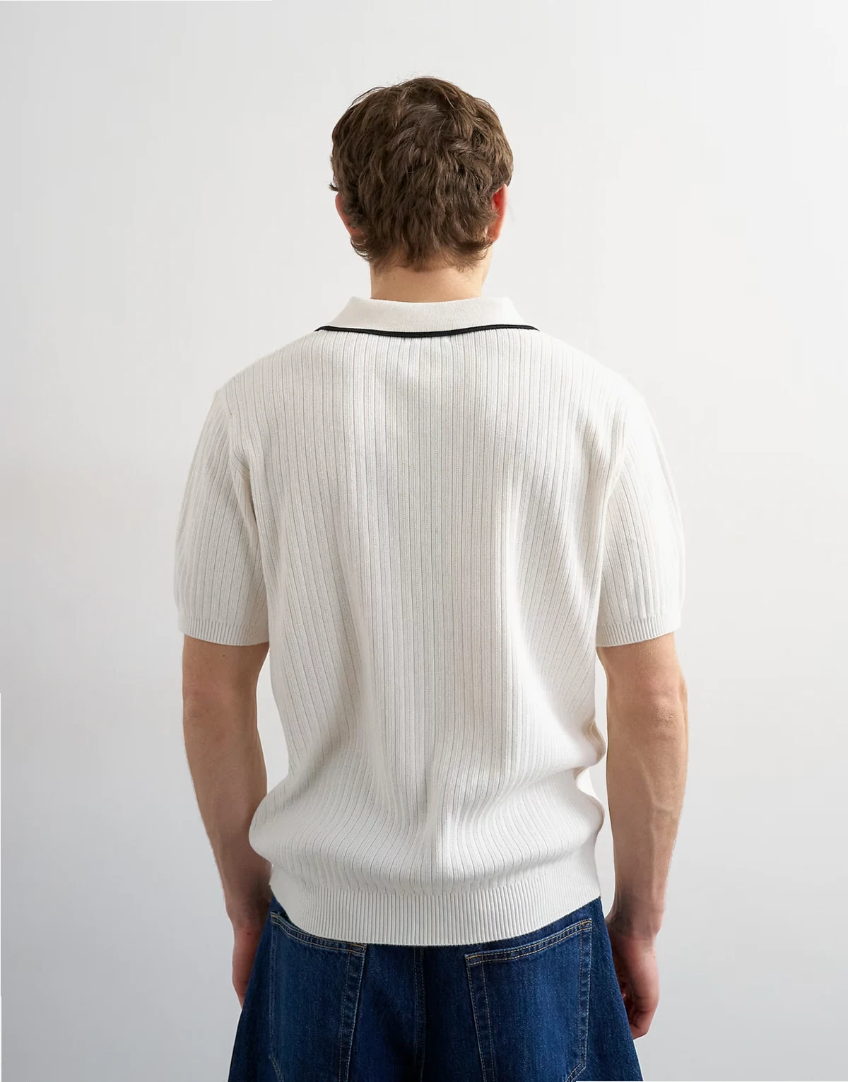 This T-shirt is crafted from a ribbed, knitted fabric. It features a polo collar, short sleeves, contrast tipping and is cut with a regular fit.