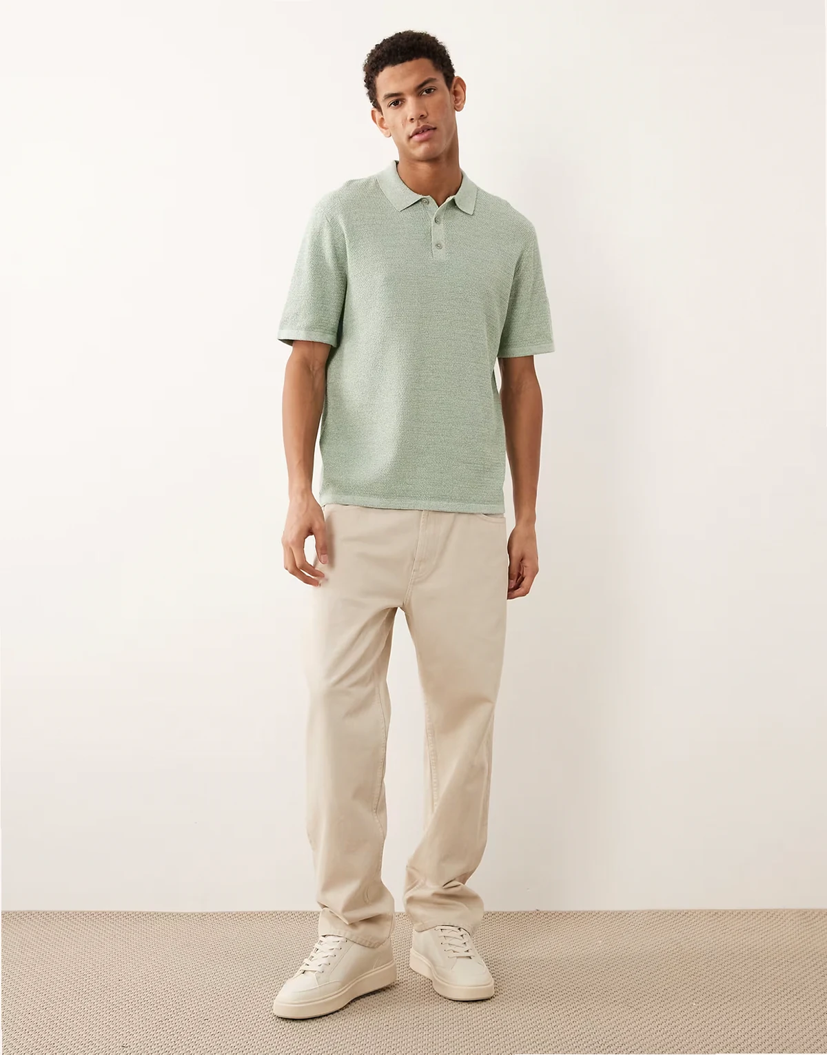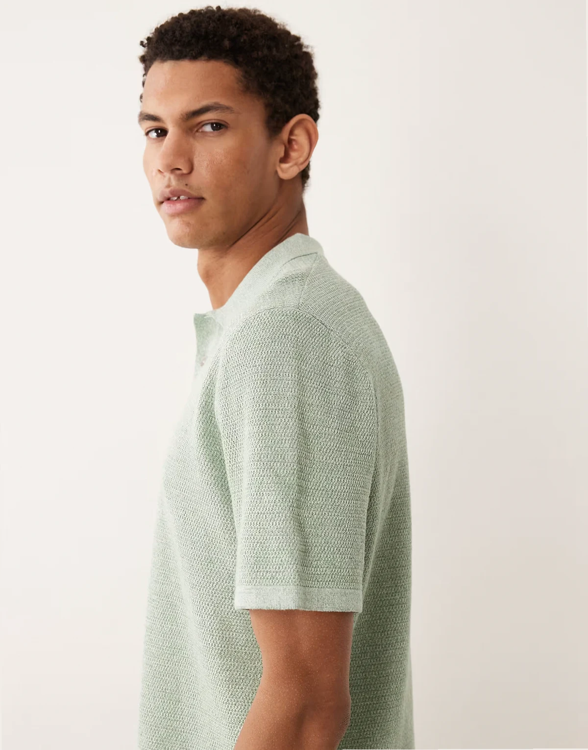 knit polo shirt with short sleeves in light green