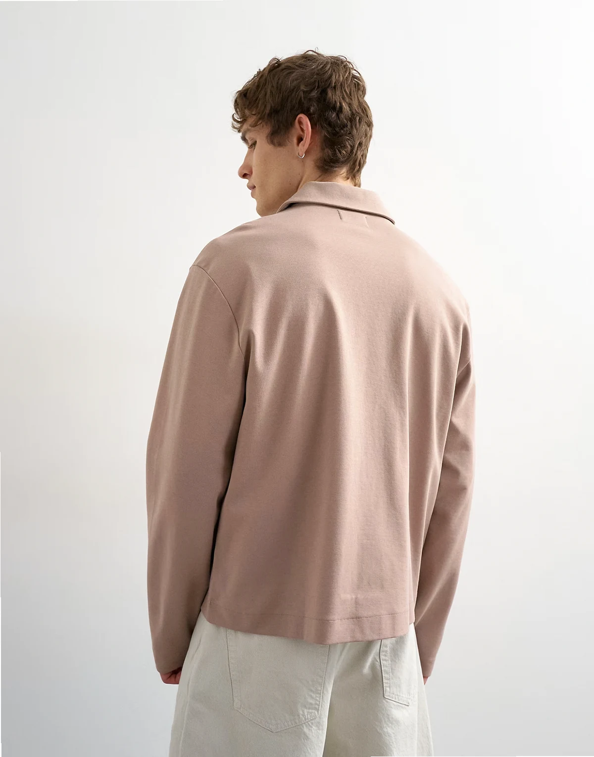 relaxed fit cropped polo in taupe