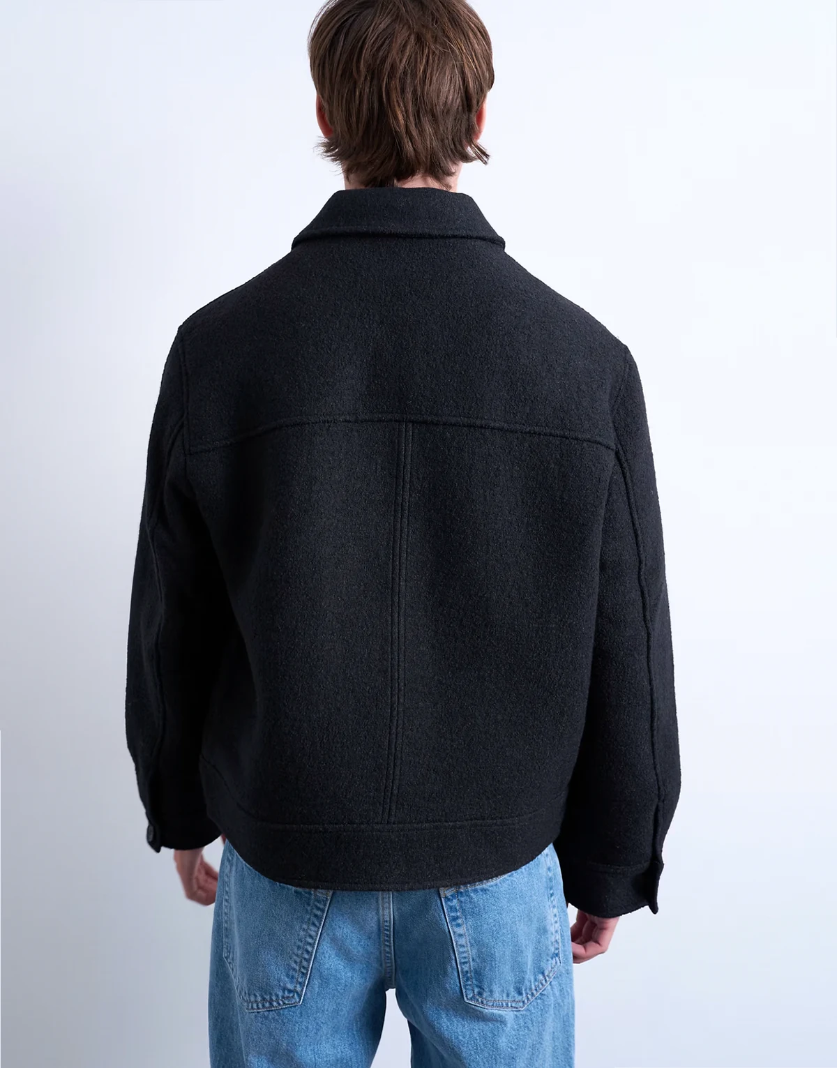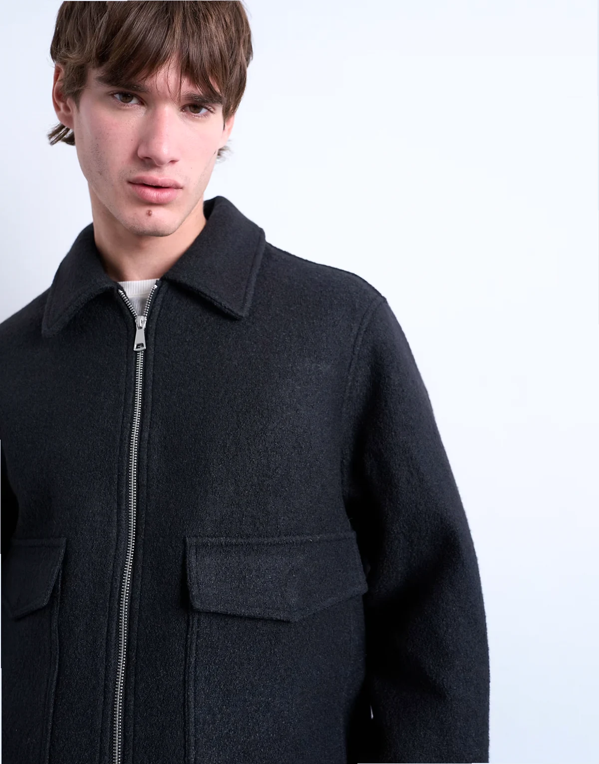 wool blend zip up shacket in dark gray