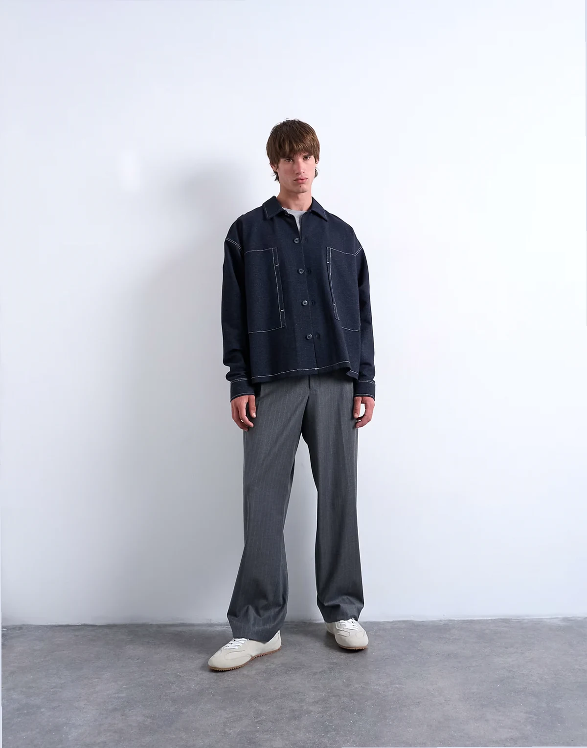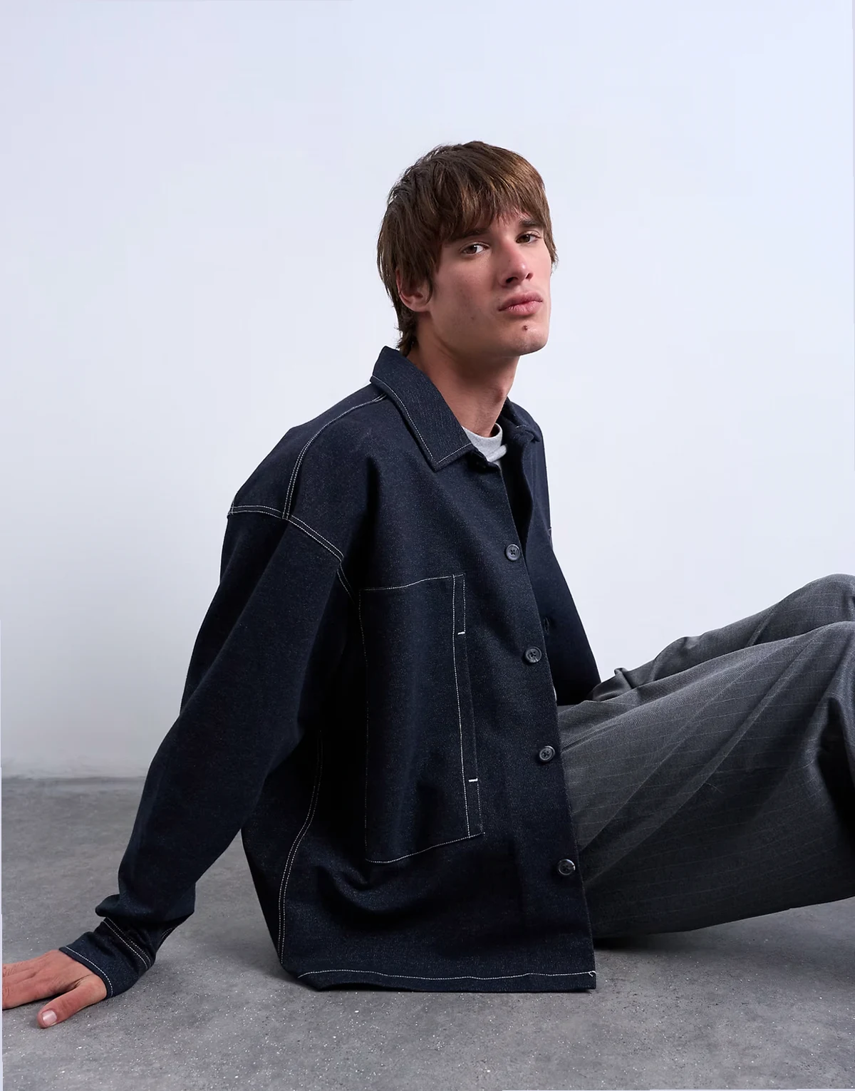 This shacket boasts all the iconic features of a denim jacket but in soft, stretchy jersey. It has a spread collar, a button placket and chest pockets, and is cut with a relaxed fit.