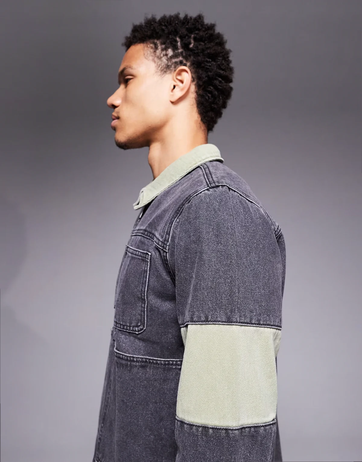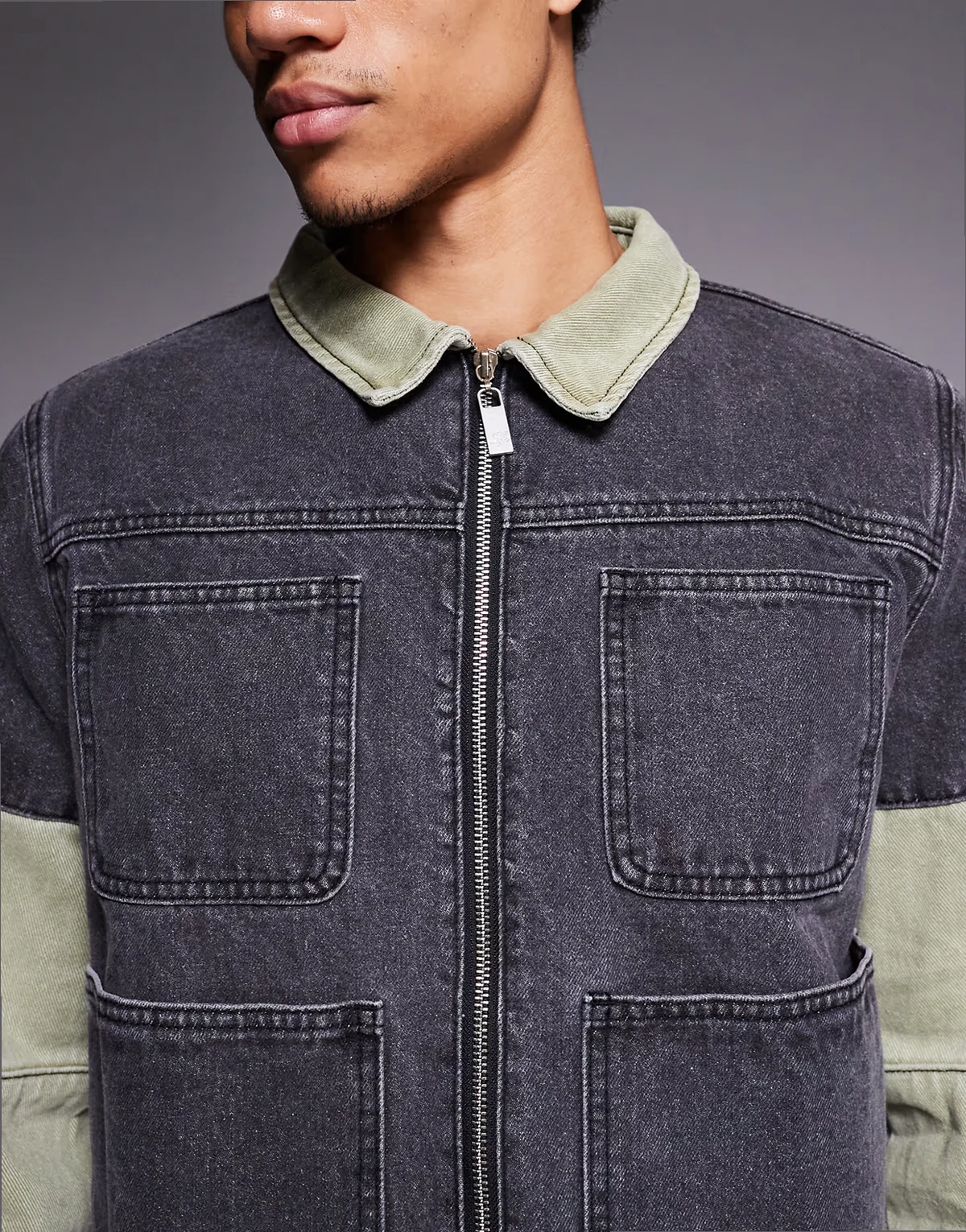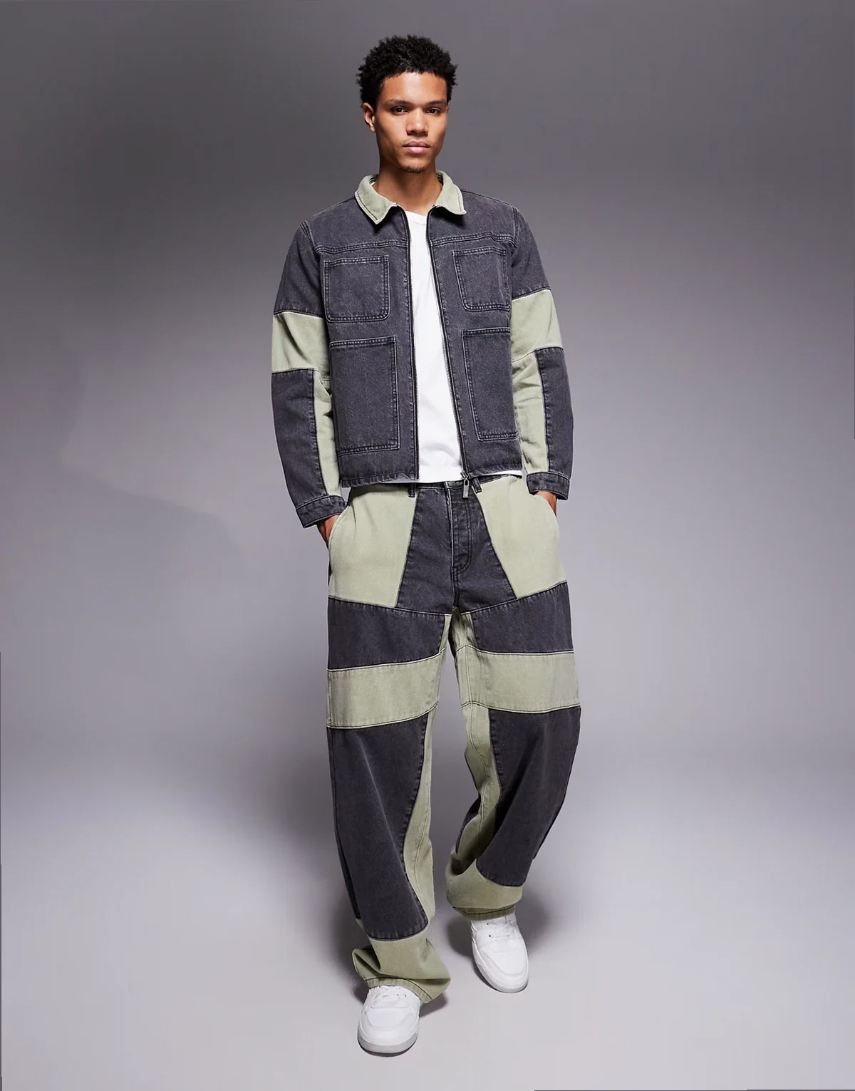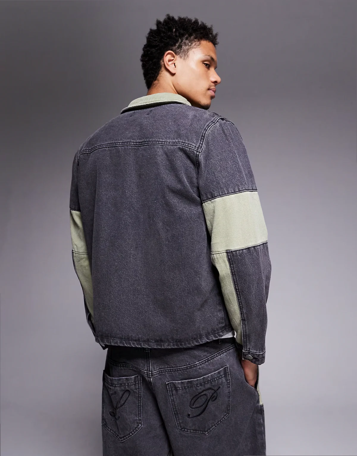 relaxed zip denim biker panel jacket in multi - part of a set