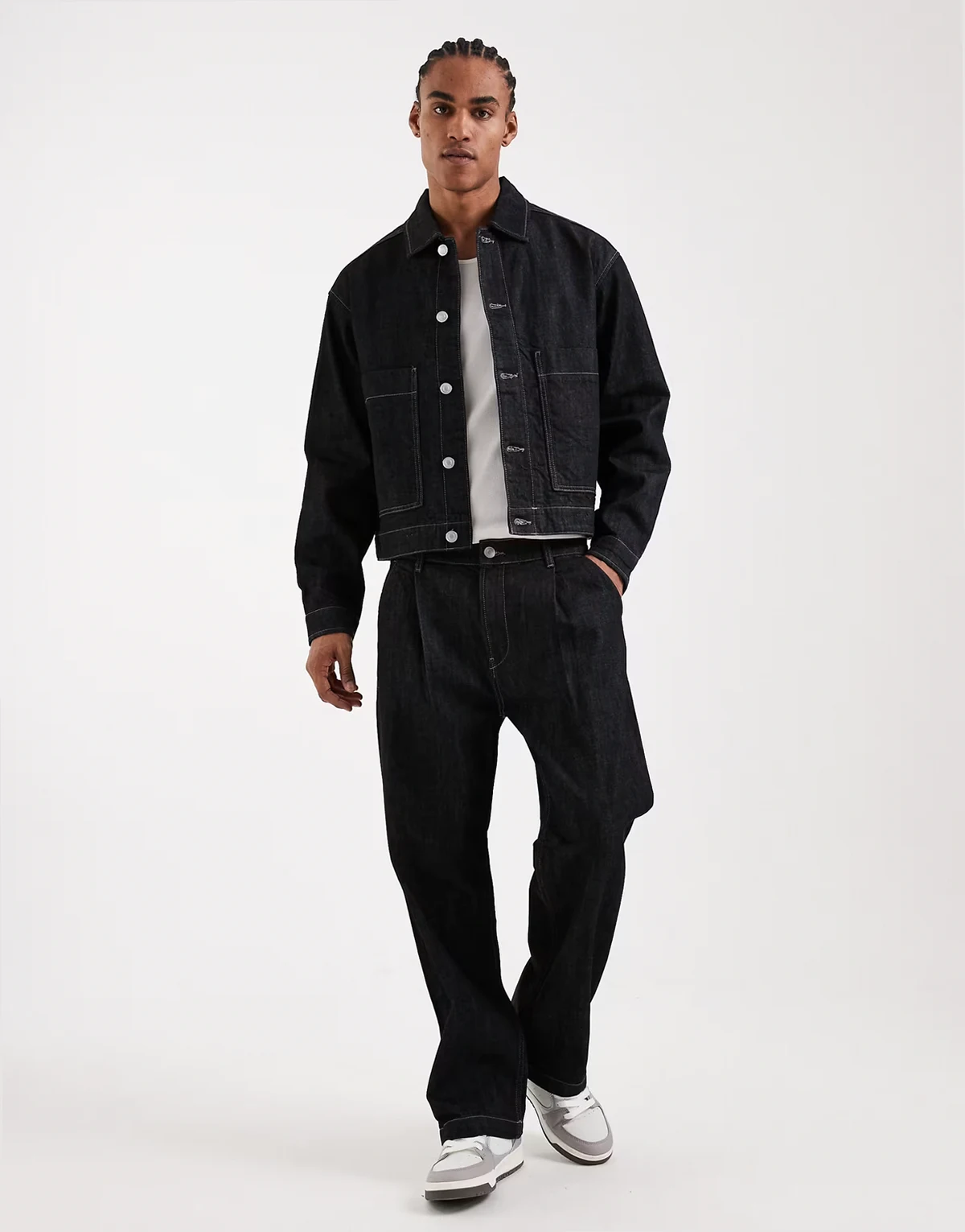 workwear raw wash denim jacket in dark blue - part of a set