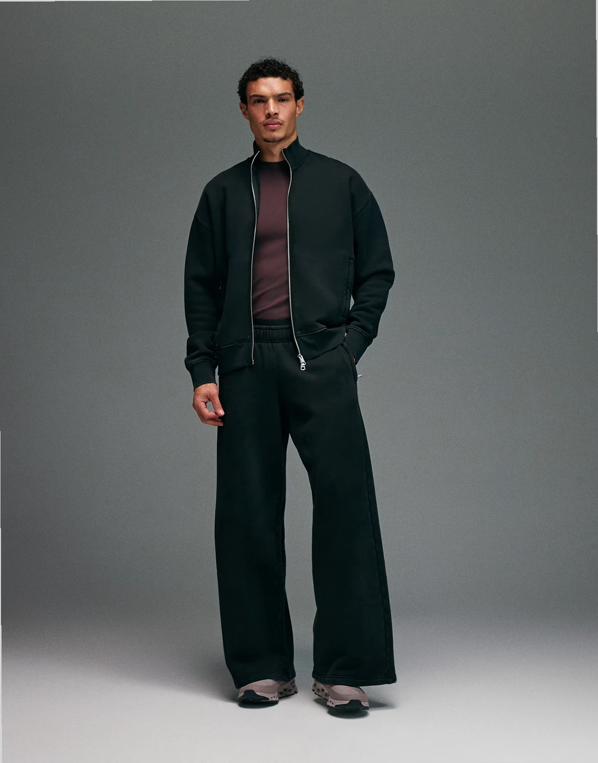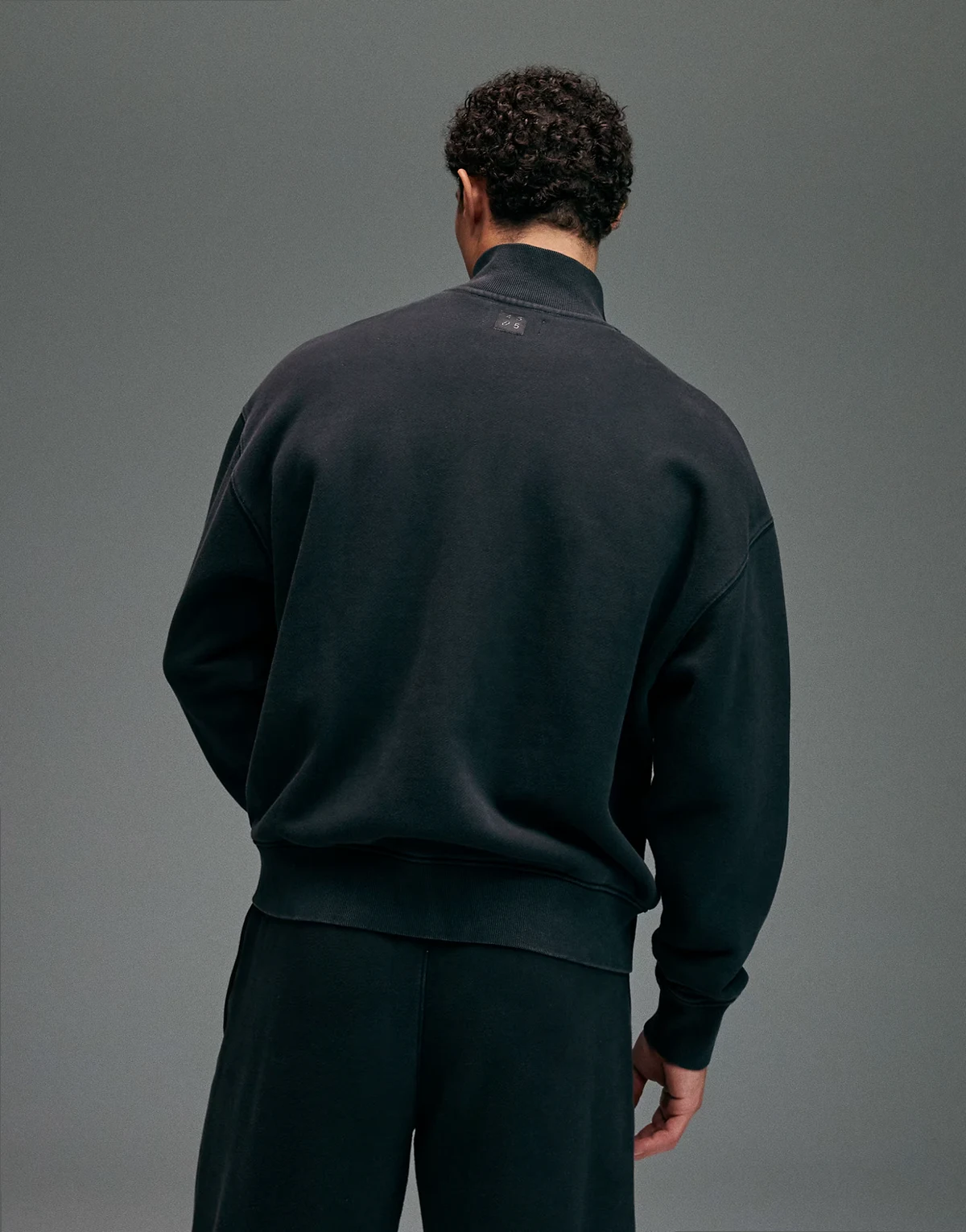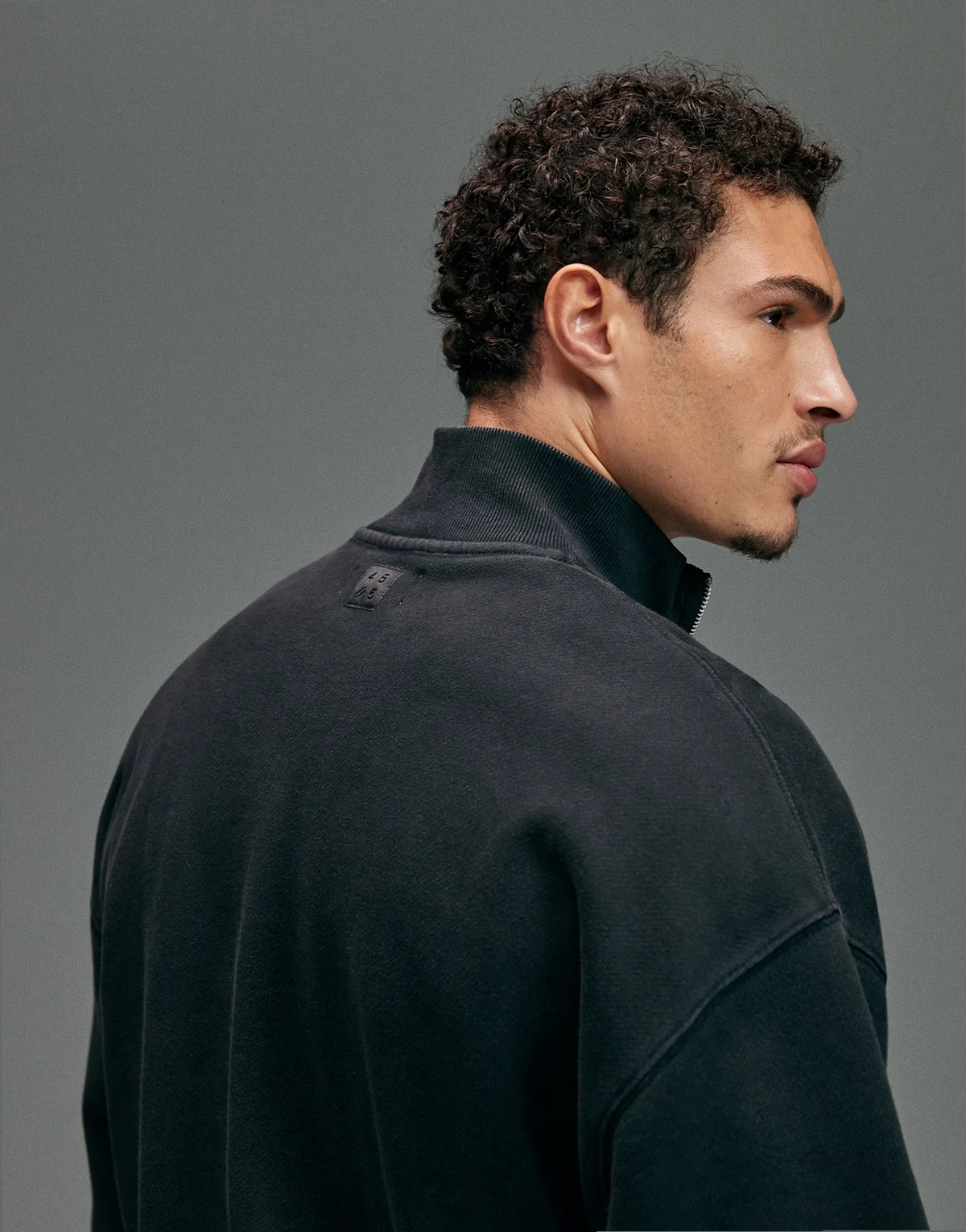 Rest Day heavyweight 440gsm cotton oversized boxy zip-up funnel neck sweatshirt in washed black