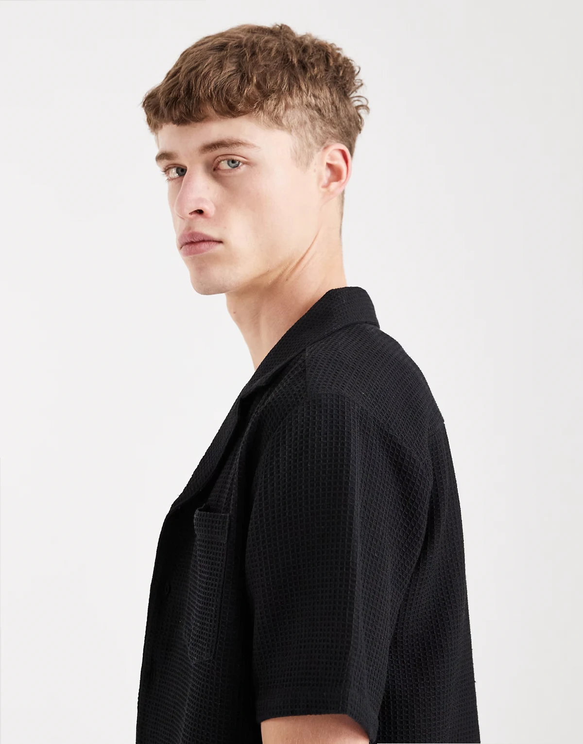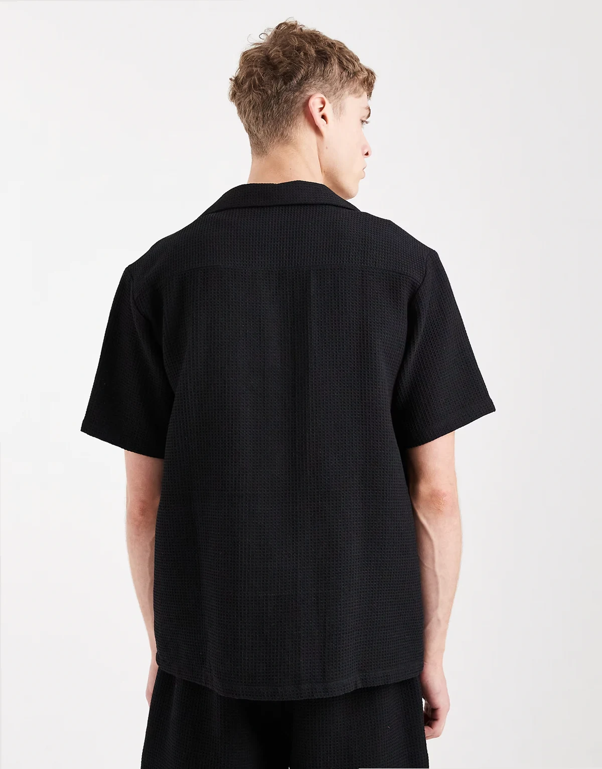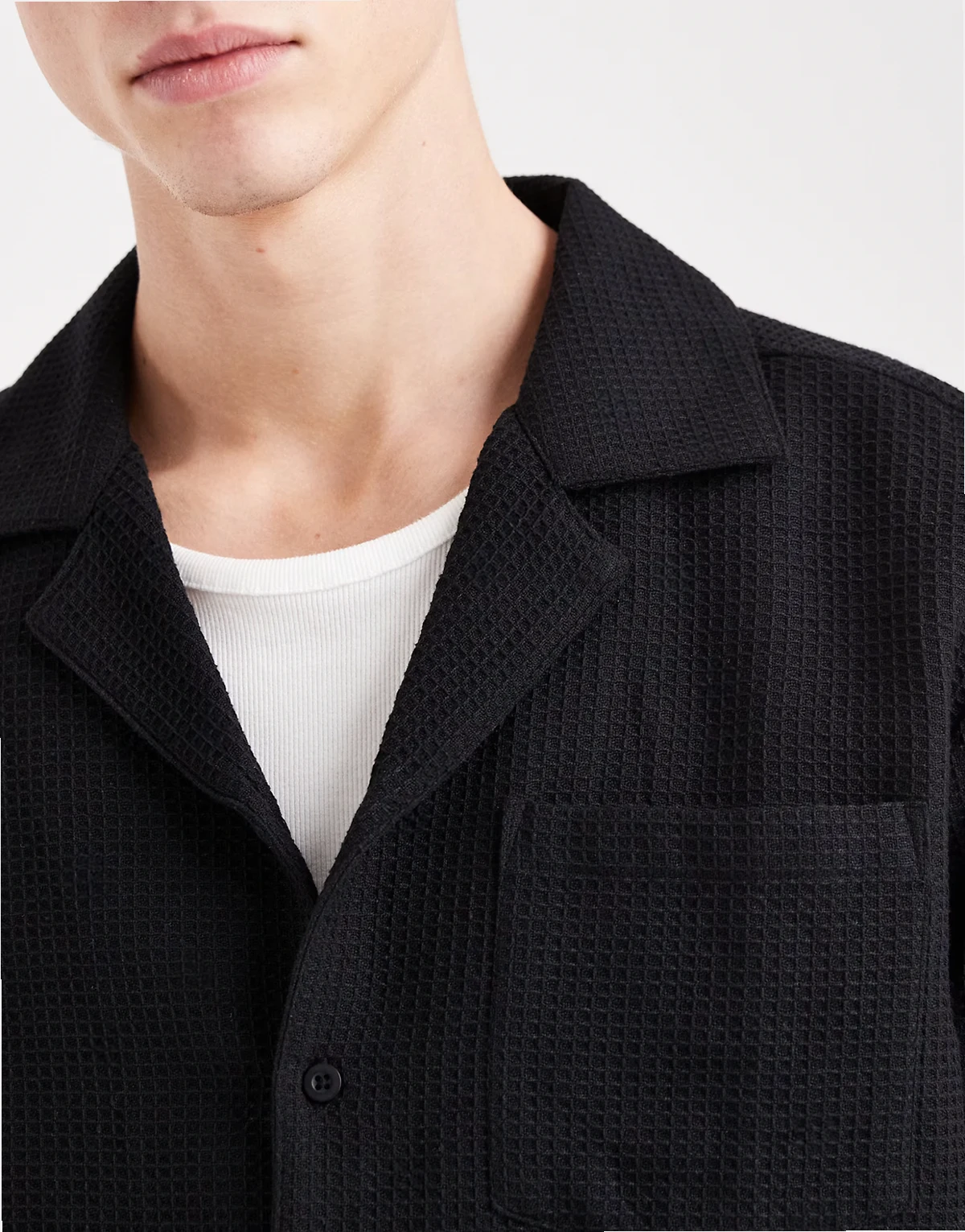 waffle knit short sleeve beach shirt in black