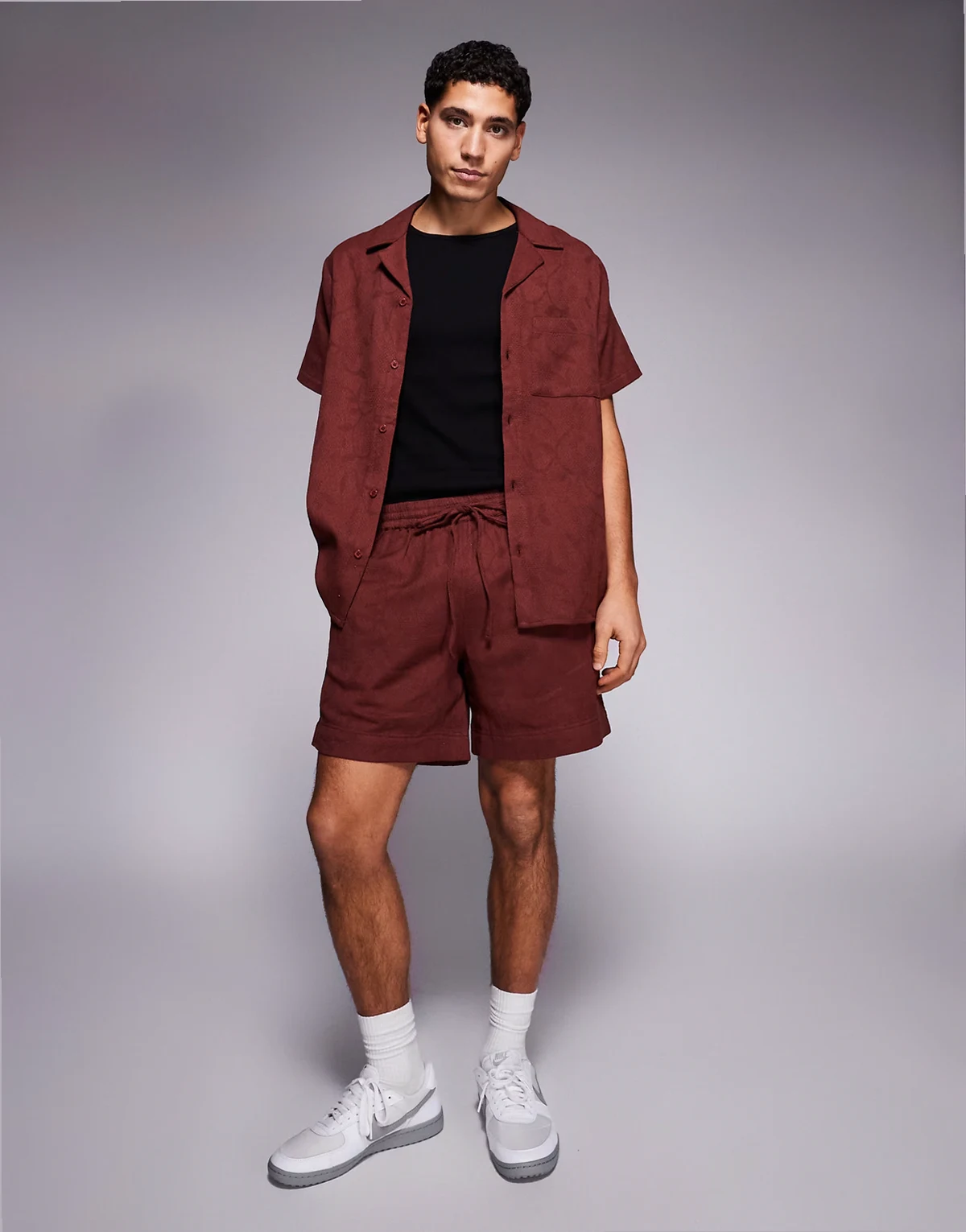 cotton jacquard shirt in burgundy