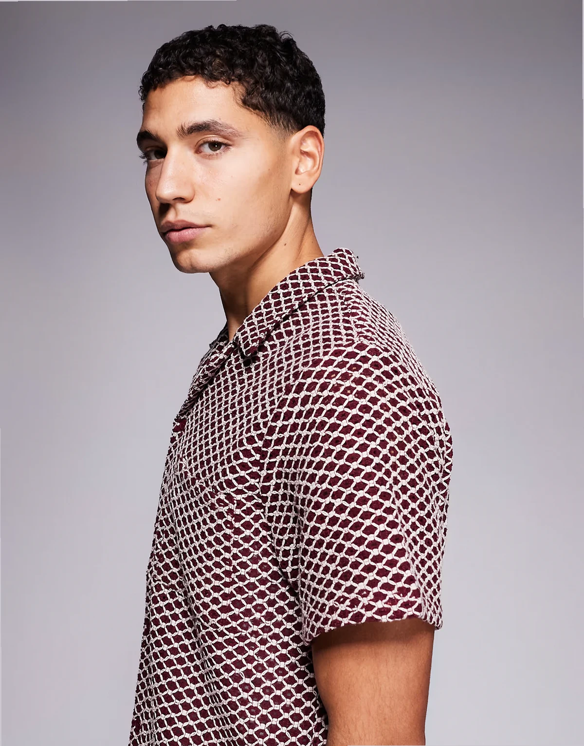 crochet shirt in burgundy