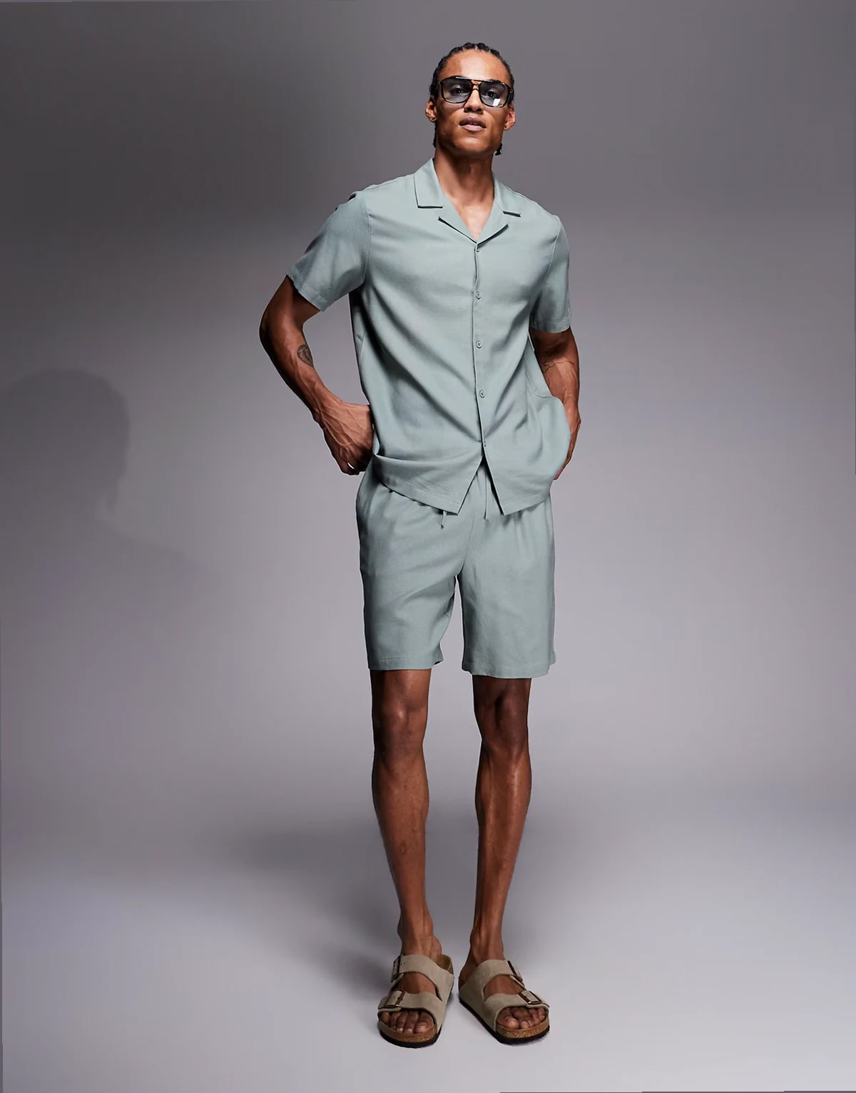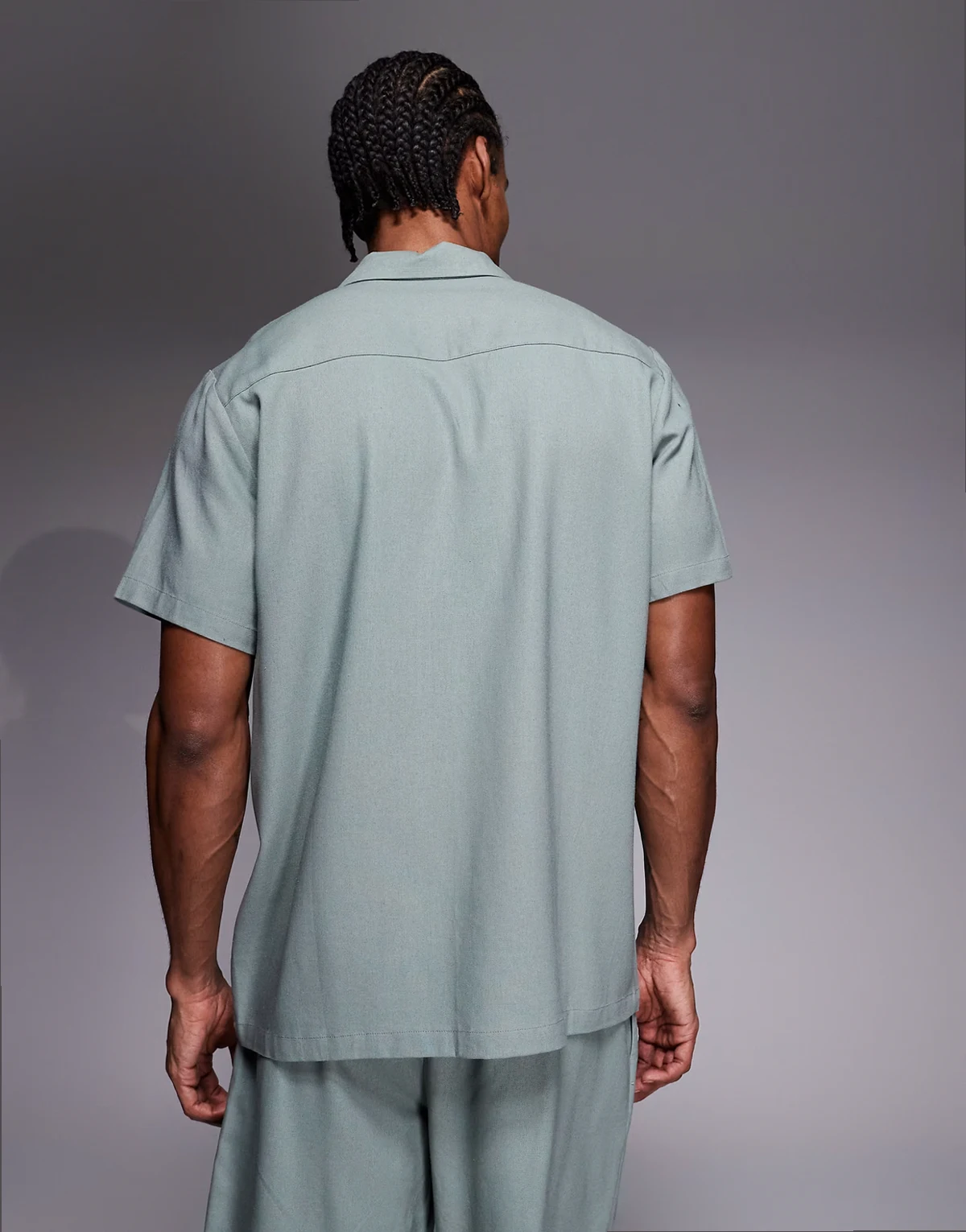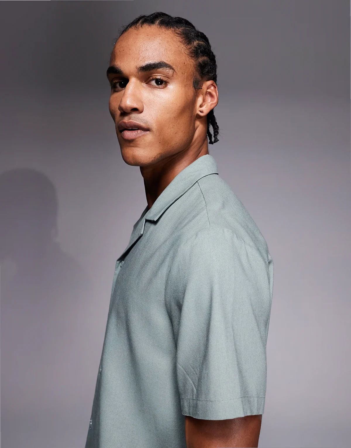 short sleeve linen blend shirt in faded green