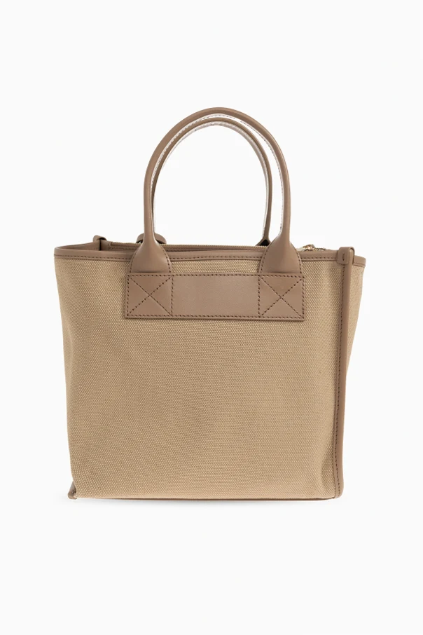 Introducing the Divide Small Tote Bag by Furla—an exquisite fusion of classic sophistication and modern finesse. This handbag is crafted from premium, tightly woven canvas in a beige hue, elegantly complemented by smooth leather accents on the handles, trims, and upper panel. Its refined, rectangular silhouette with subtly structured sides and a pronounced, wide base ensures timeless versatility while maintaining a polished presence.