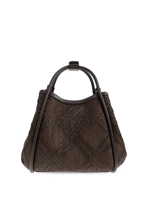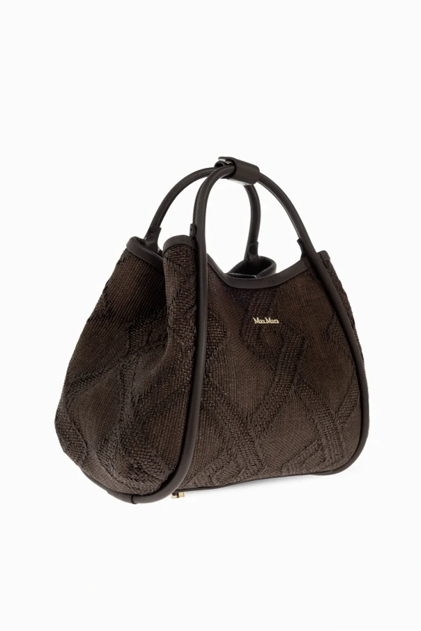 The Marine XS handbag by Max Mara exudes refined sophistication through its modern geometric silhouette and carefully sculpted, rounded sides. Crafted from premium leather in a rich brown hue, its woven texture subtly forms a distinctive and tactile diamond-inspired pattern, elegantly balanced by smooth leather accents and structured, minimalist double handles.
