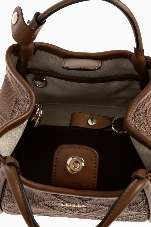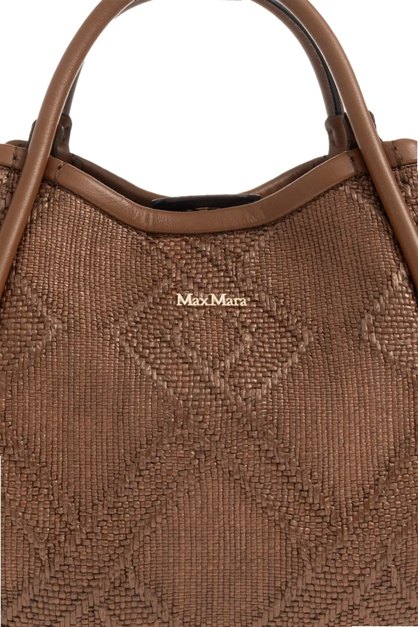 Introducing the Marine XS Handbag by Max Mara—a compact masterpiece, radiant in rich brown . Crafted for the discerning individual, this handbag exhibits a sleek, geometric silhouette accentuated by its refined trapezoidal form and gracefully rounded handles enveloping the structure.