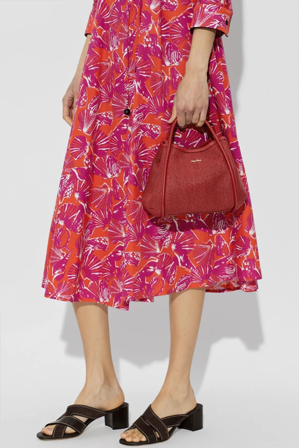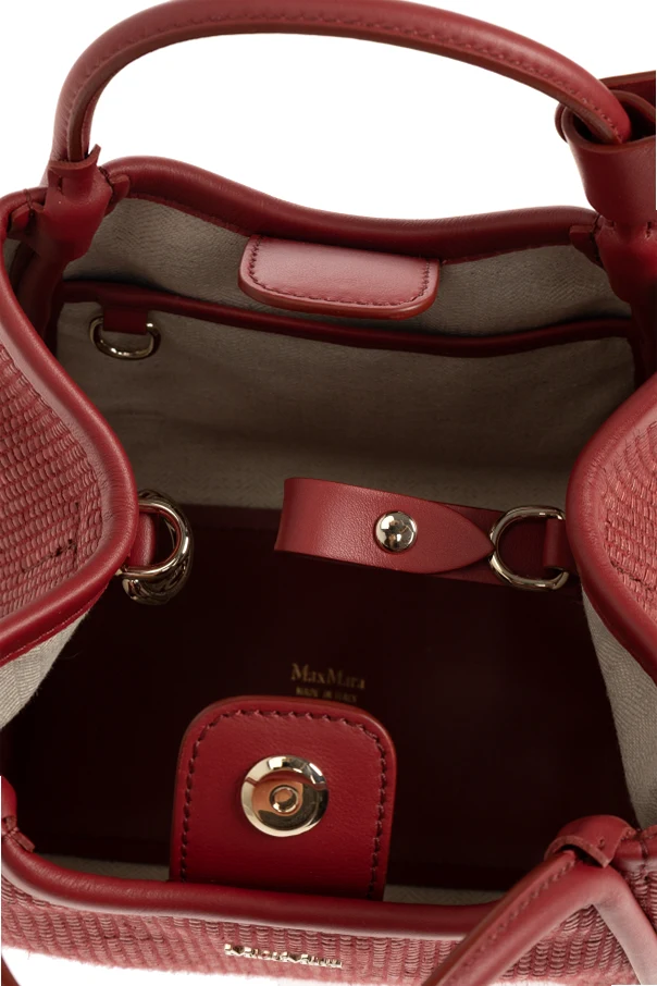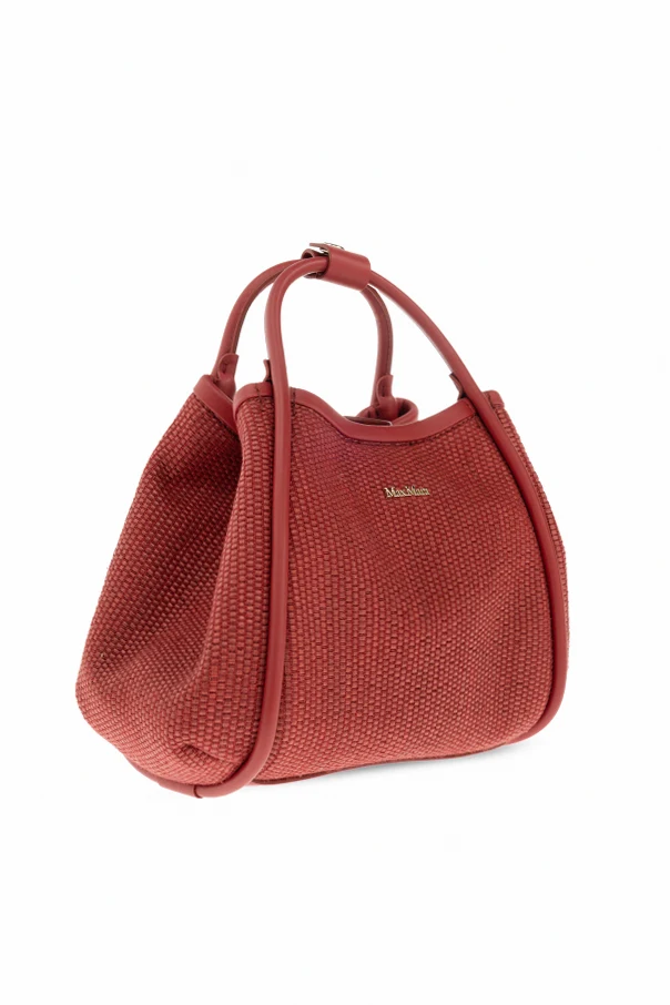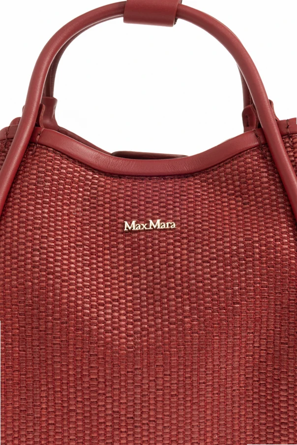 Artful details abound: elegant gold-toned hardware and a subtle, metallic MaxMara logo grace the front, underscoring the bag’s luxurious provenance. The smooth leather trim—meticulously matched to the body—enhances the ensemble, creating a harmonious balance between modern design and classic elegance.