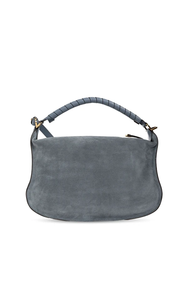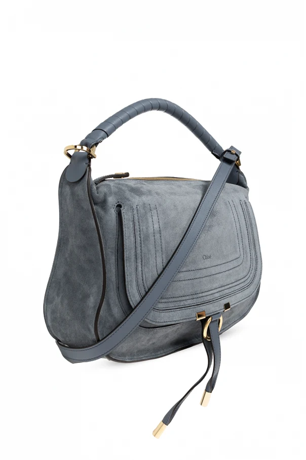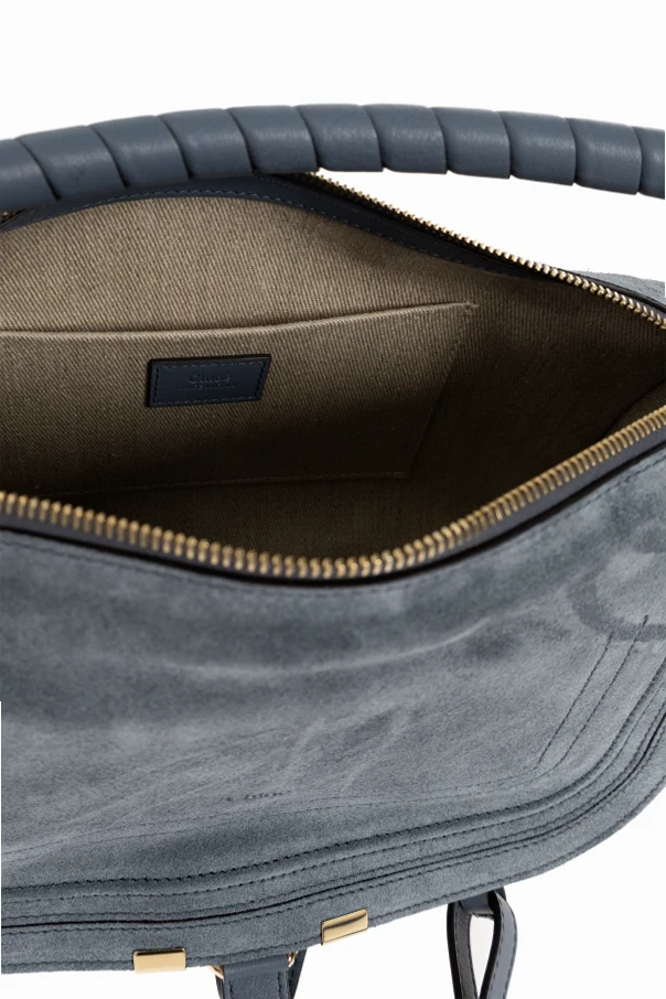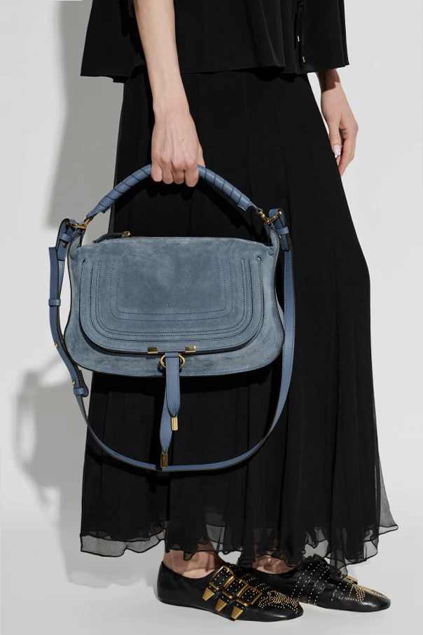 Experience refined sophistication with the Marcie Small handbag from Chloé’s exclusive collection. Crafted from the highest-quality suede, complemented by a smooth leather handle and strap in perfectly matched hues, this piece exudes understated elegance. The gently rounded, elongated silhouette is crowned by a distinctly contoured top flap, accented with arched stitching for a classic, minimalist aesthetic.