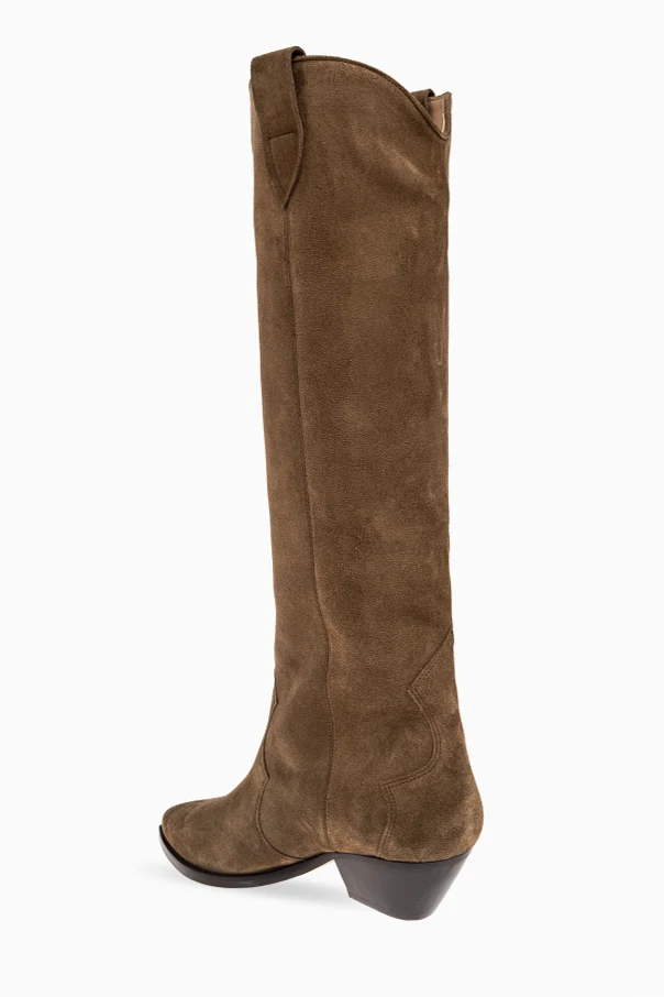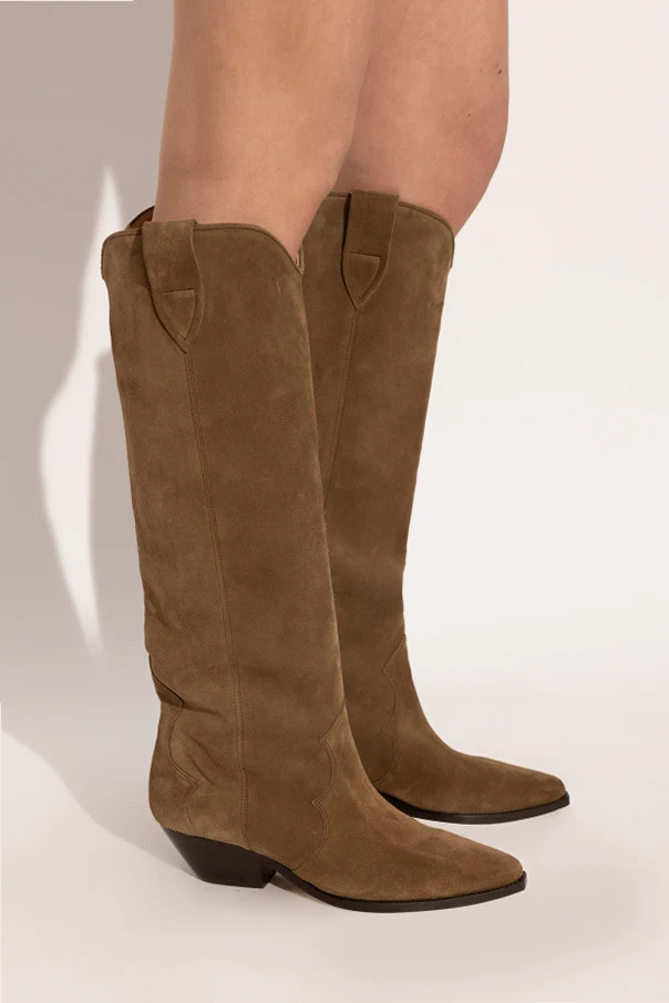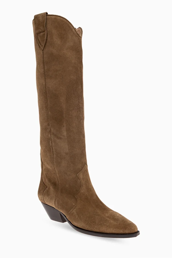 Crafted for discerning tastes, the ‘Denvee’ suede turtleneck boots from Isabel Marant’s exclusive designer collection exude timeless grandeur. Meticulously shaped with a classic, elongated, and subtly pointed toe, these over-the-knee cowboy boots stand out with an elegant, high shaft reaching just below the knee.