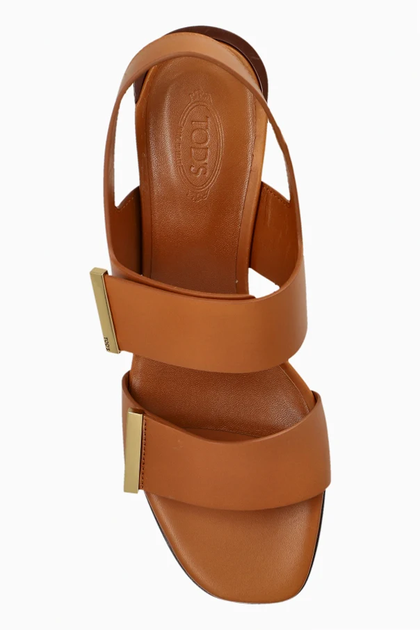 The distinctive mid-height, rectangular block heel adds not only subtle elevation but also exquisite balance, perfect for extended wear. Gleaming gold-tone metal accents on each strap imbue the design with understated opulence, while the discreetly embossed brand logo on the insole speaks to Tod’s renowned reputation for graceful detail.