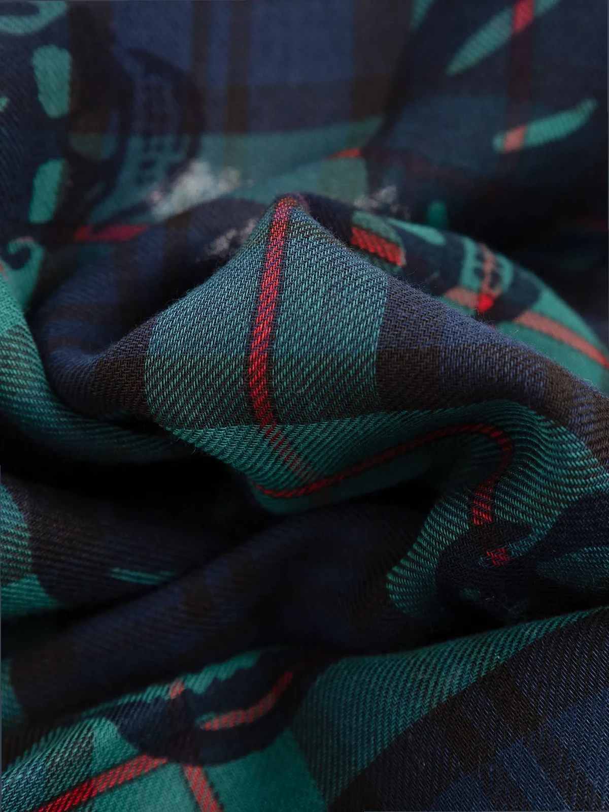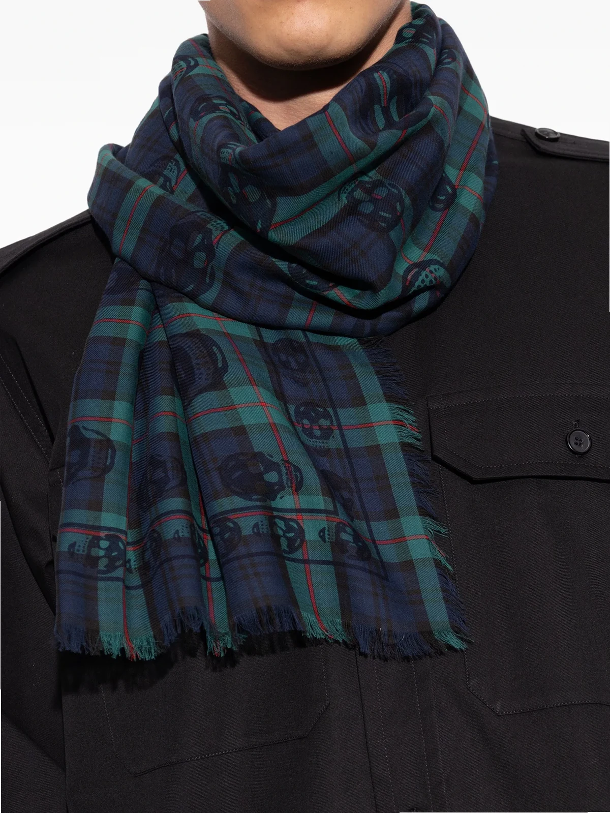 skull-print plaid scarf