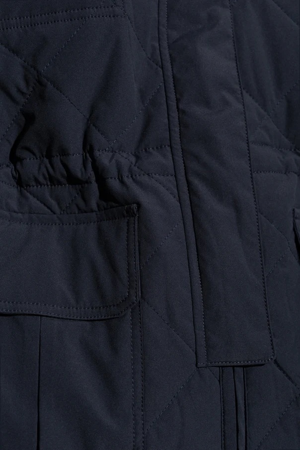 Meticulously crafted from a matte technical fabric, the jacket’s timeless quilted pattern—arranged in classic diamond motifs—exudes enduring elegance while providing superior protection against the elements. The contrasting beige quilted lining offers unexpected sophistication and refined comfort.