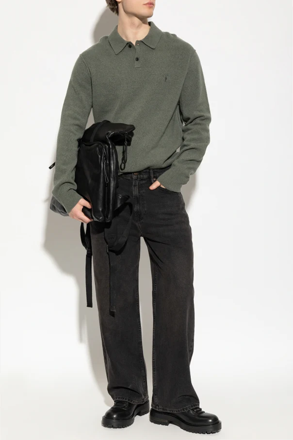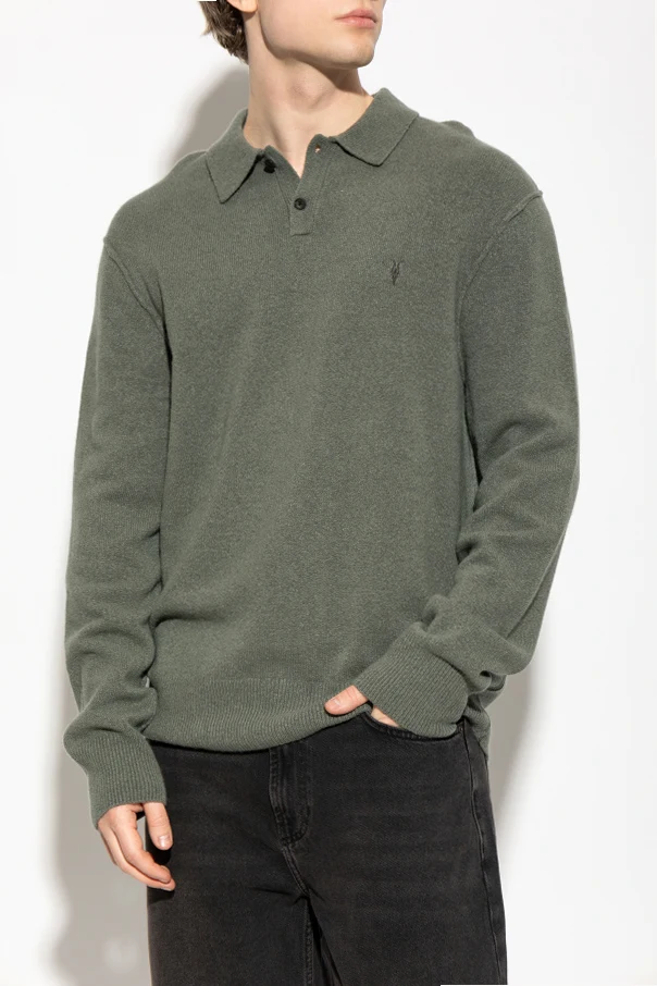The AllSaints Polo ‘Statten’ epitomizes understated refinement, meticulously crafted for the discerning gentleman. Presented in a luxuriant bottle green hue, this classic long-sleeve piece features a timeless, straight silhouette, accentuated by a signature polo collar fastened with two discreet buttons. The subtle, tone-on-tone embroidered designer logo graces the left chest, maintaining a harmonious and sophisticated visual appeal.