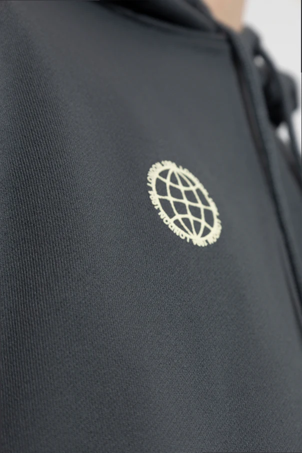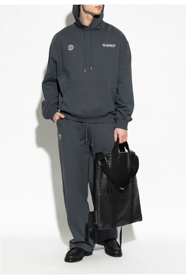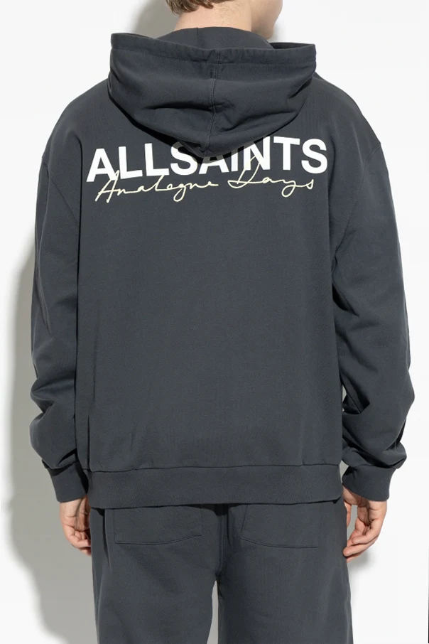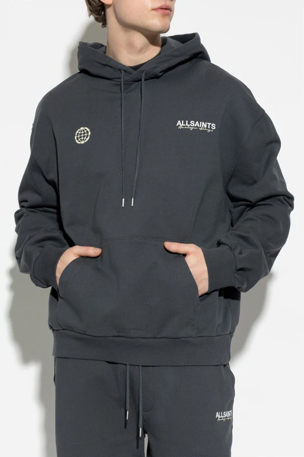 Distinctive details set this hoodie apart: a refined globe-inspired logo printed in a light shade adorns the left chest, complemented by the bold ‘ALLSAINTS’ script on the right. The back showcases a striking large-scale logo and stylized lettering in contrasting tones, expressing urban individuality.