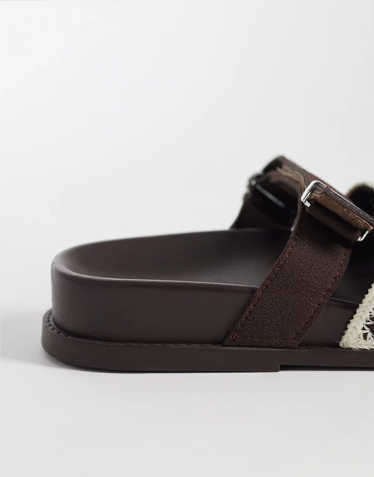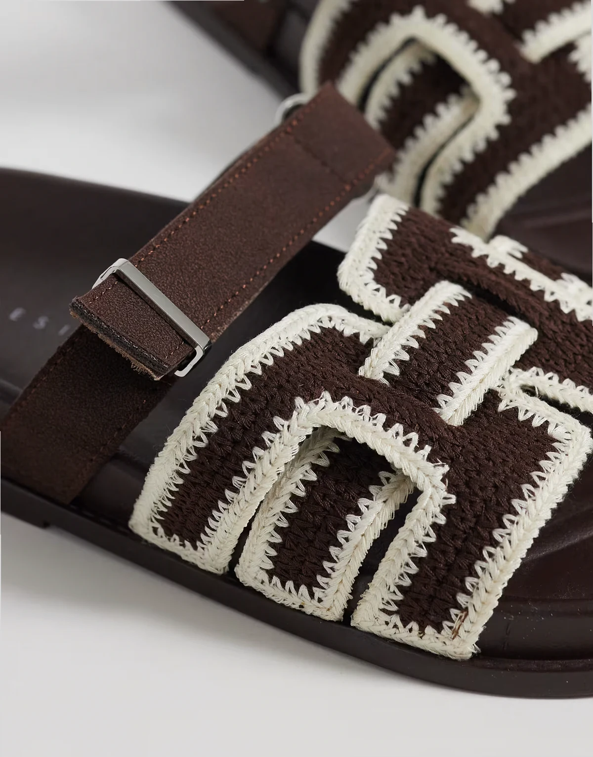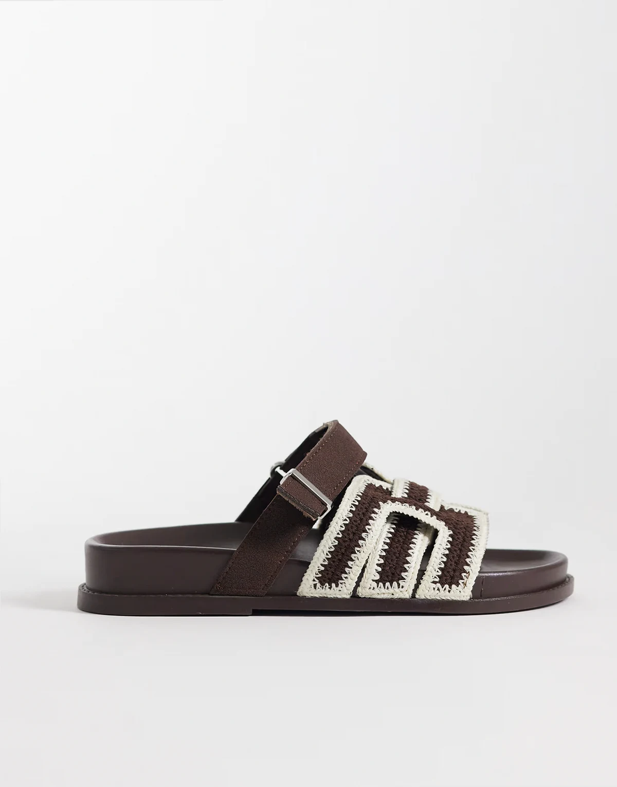 Fion woven knit footbed sandals in chocolate