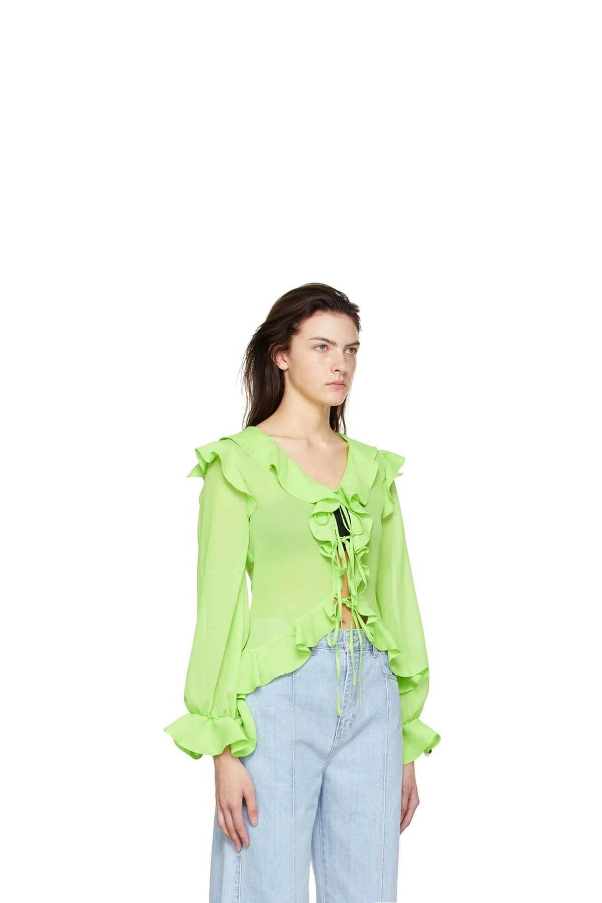 Off-White Puff-Sleeve Ruffle Crêpe De Chine Blouse
