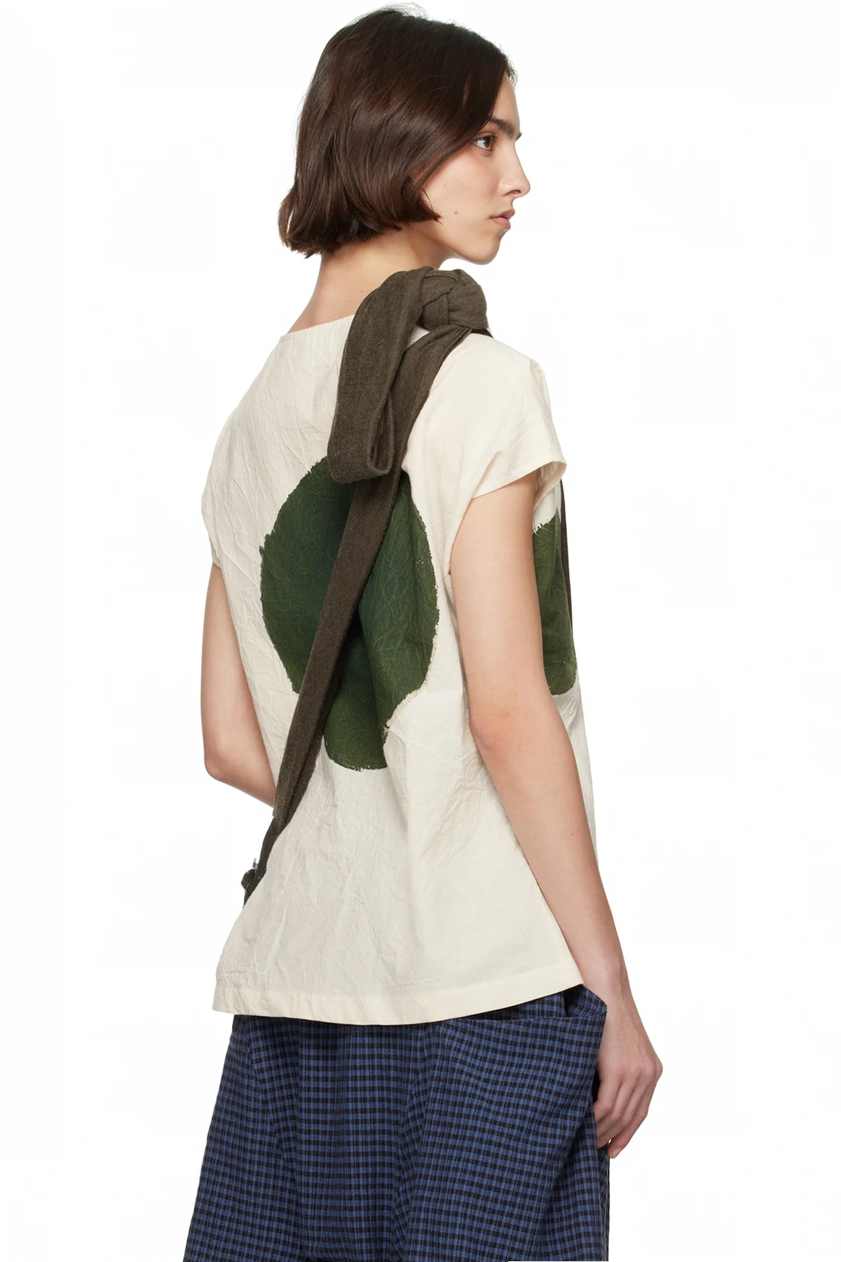 Crinkled cotton muslin T-shirt. Graphic pattern printed throughout.
