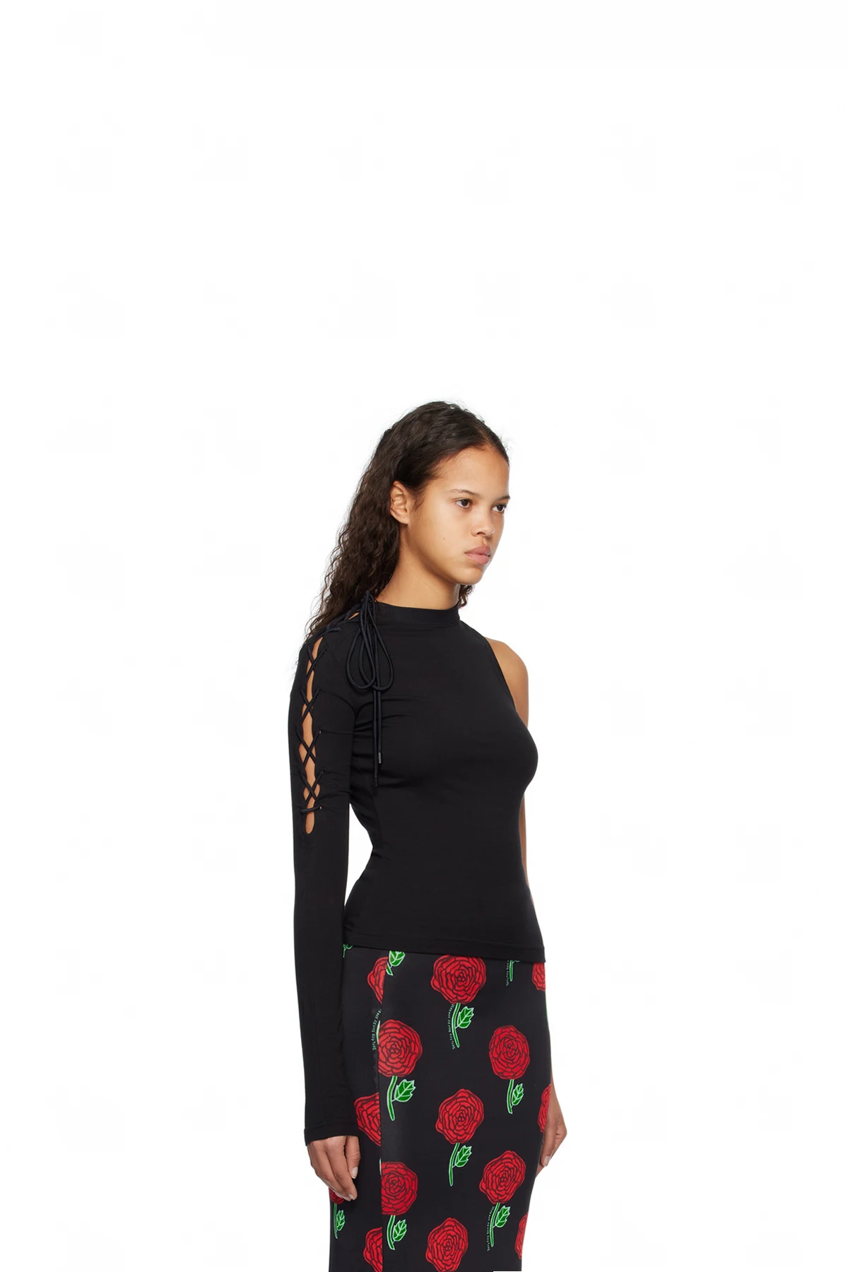 Black Lace-Up Long Sleeve T-Shirt