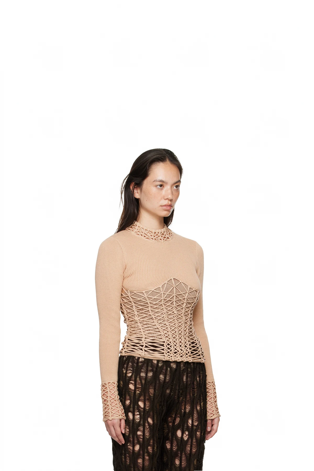 Beige Half-Seen Long Sleeve T-Shirt