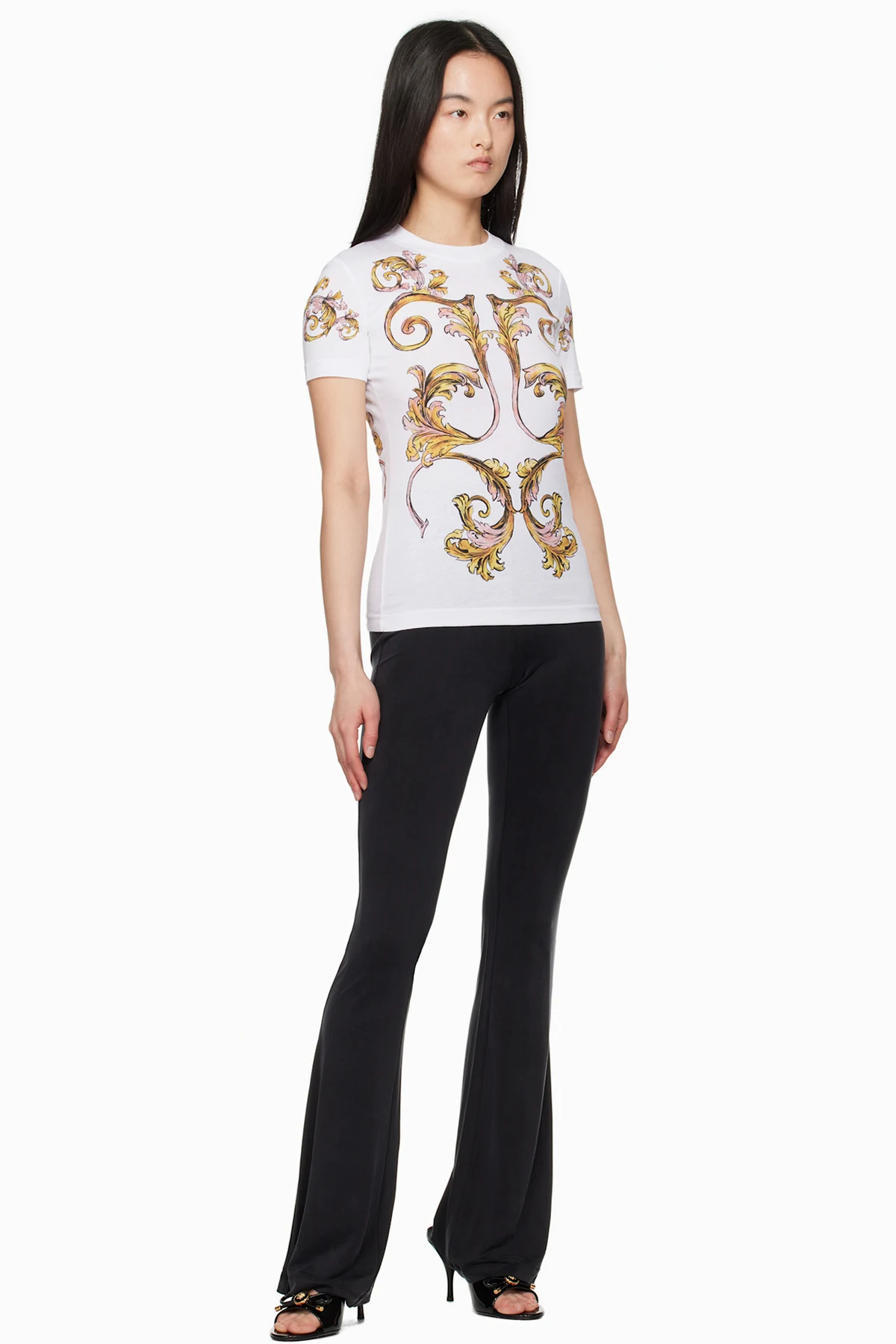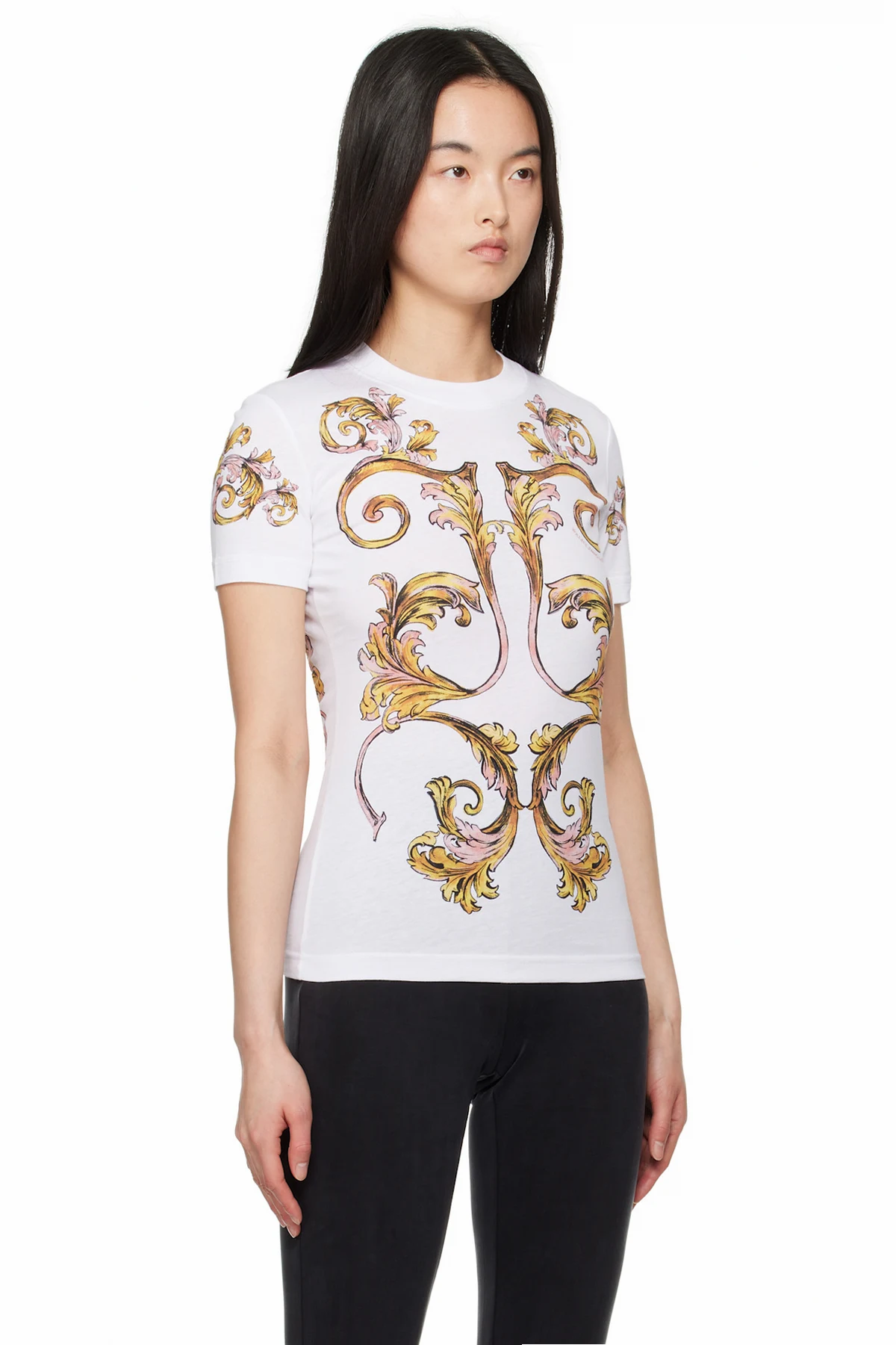 Cotton jersey T-shirt. Barocco pattern printed throughout.