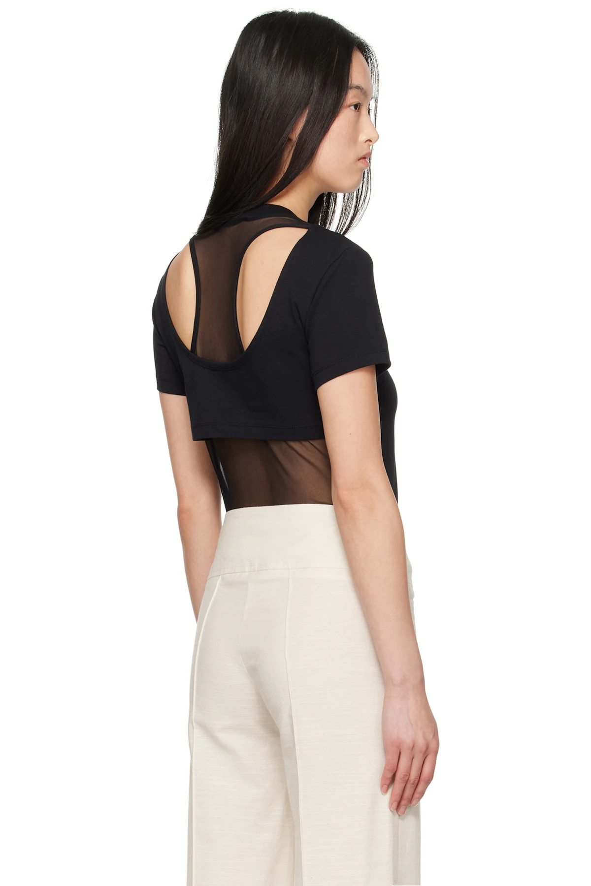 Stretch cotton jersey and semi-sheer stretch nylon mesh T-shirt.
