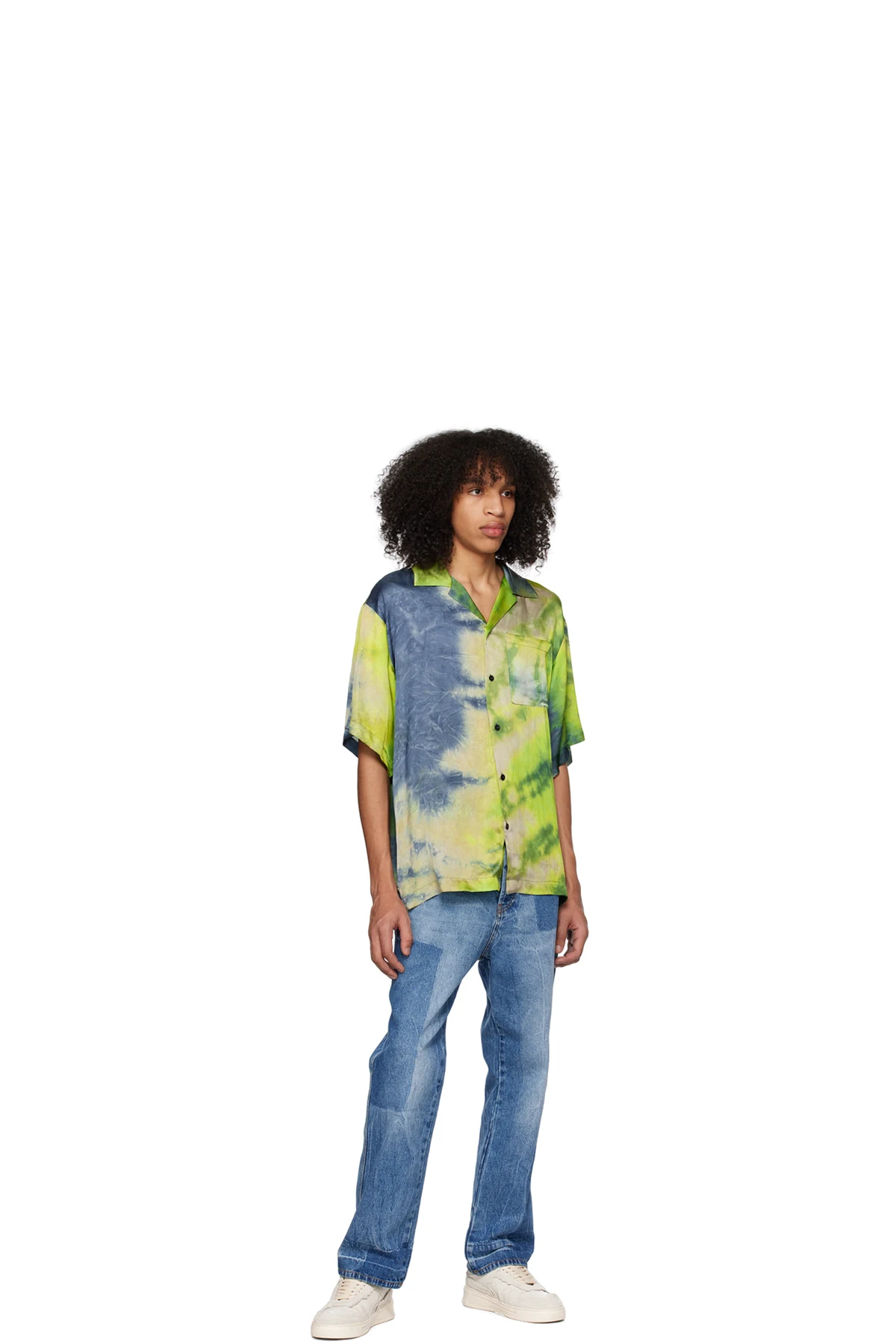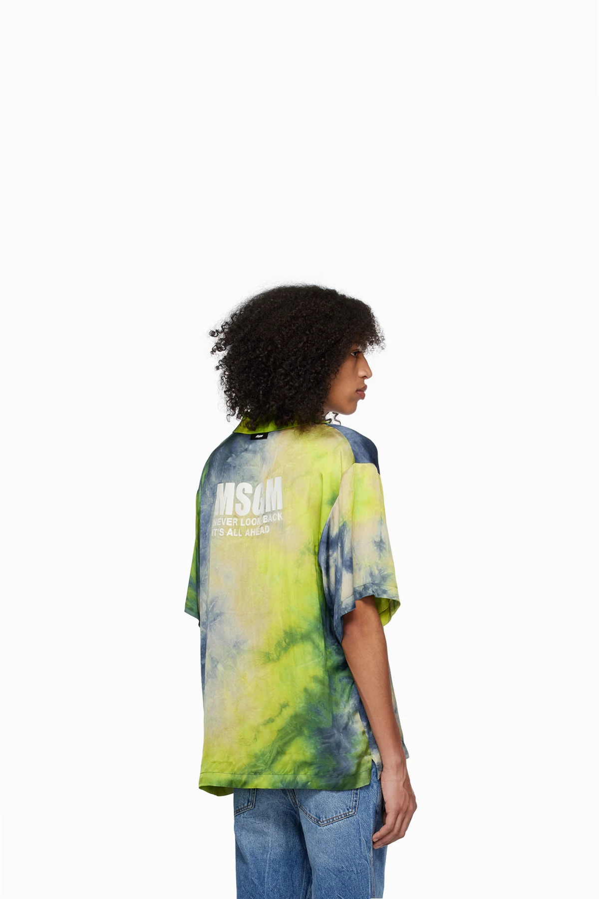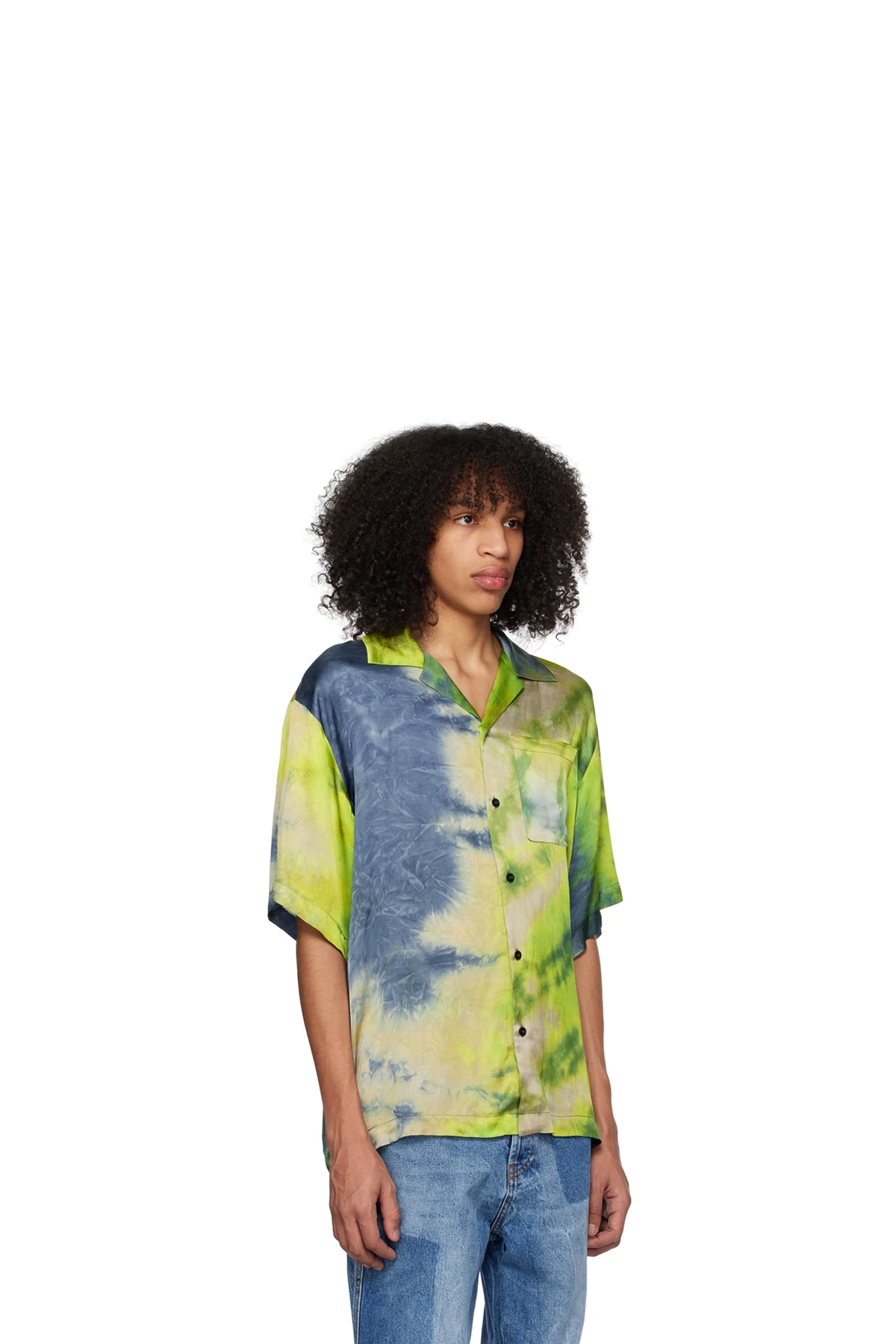Viscose satin shirt. Tie-dye pattern printed throughout.