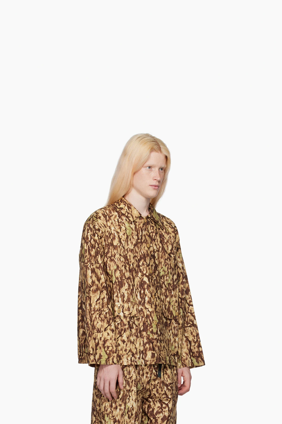 Cotton ripstop shirt. Camouflage pattern printed throughout.