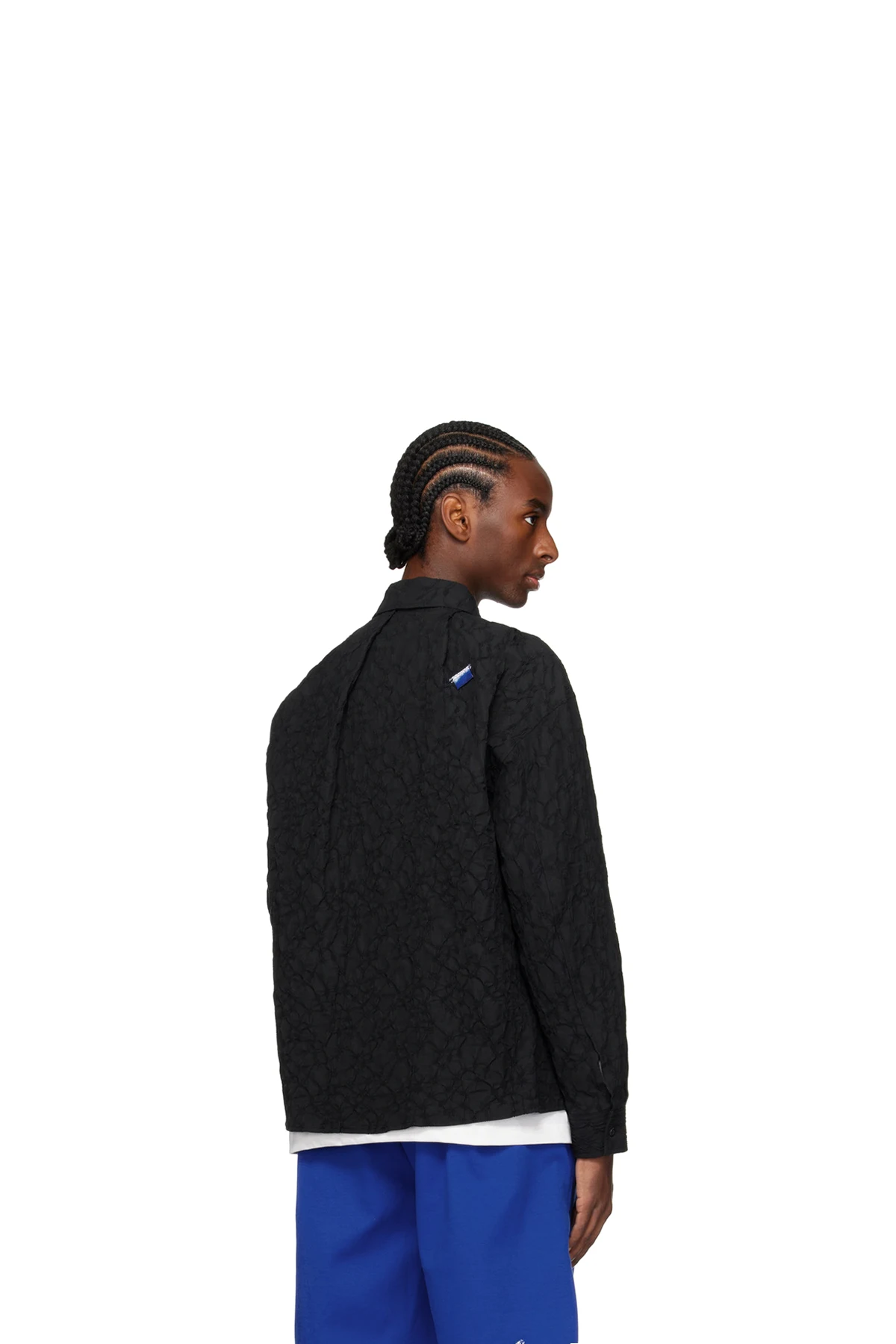 · Pleats at back collar