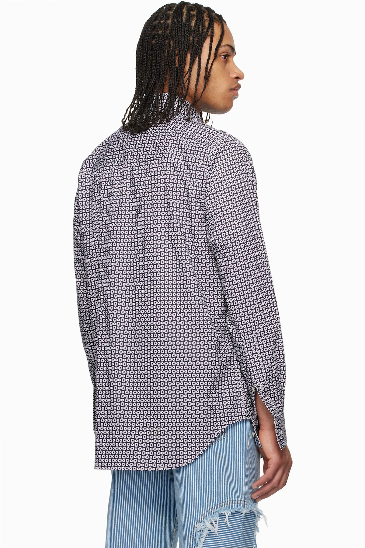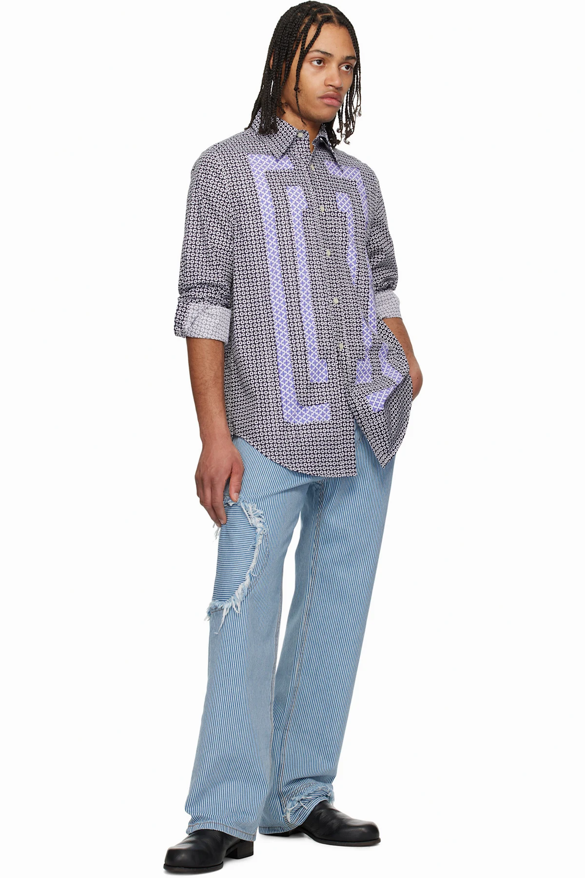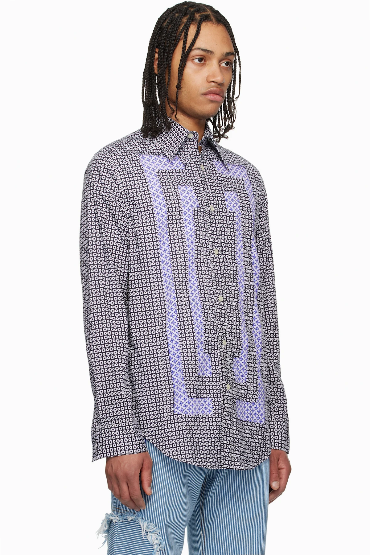 Plain-woven cotton shirt. Raw edges and graphic pattern printed throughout.