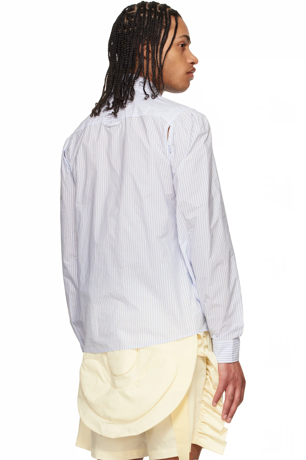 Nylon-blend taffeta shirt. Slit with button fastening at underarms for alternate styling.