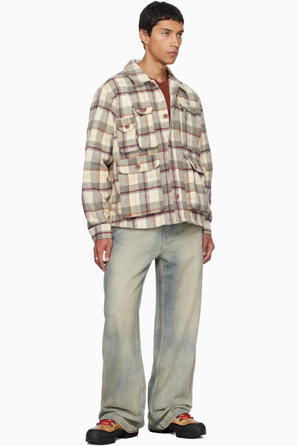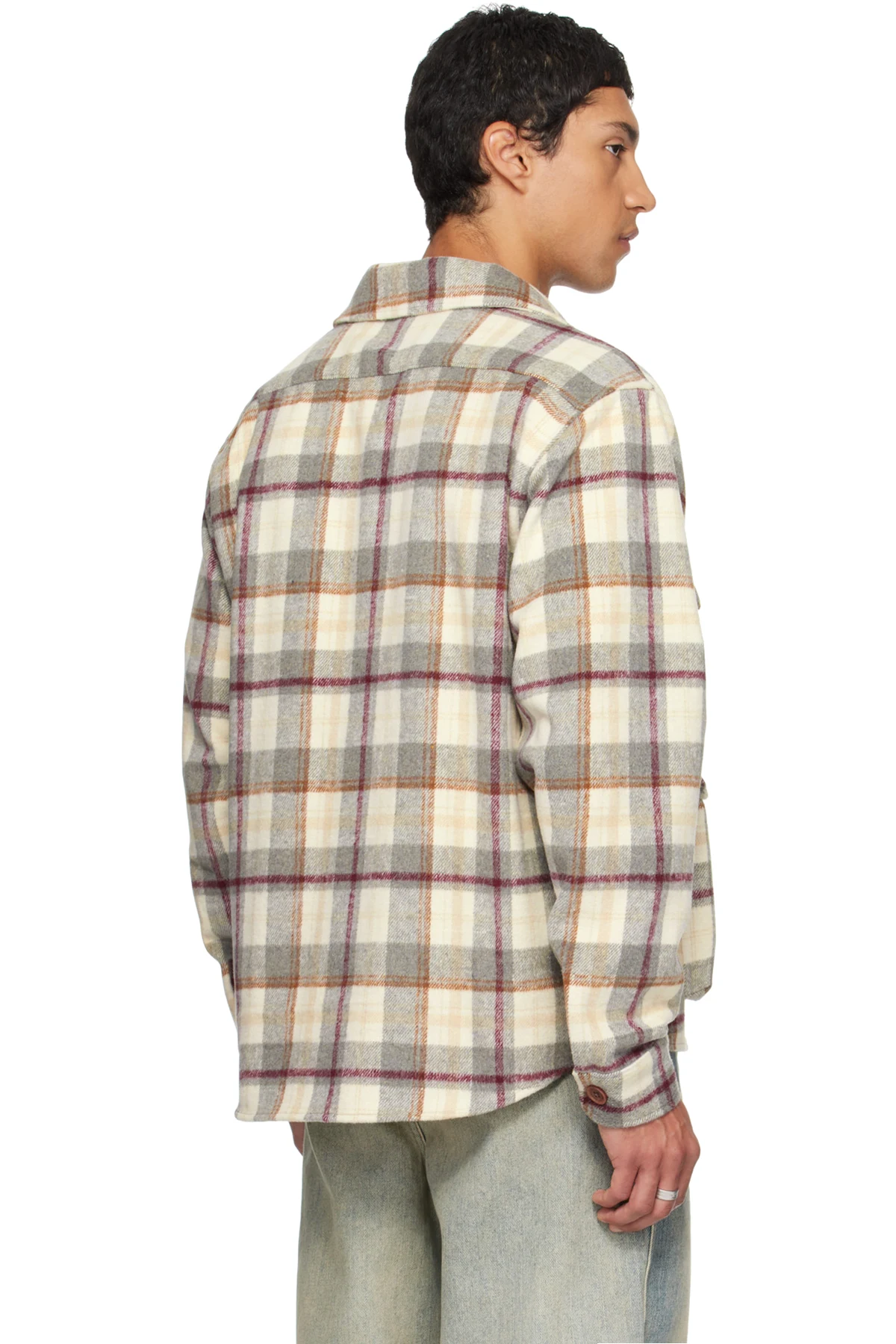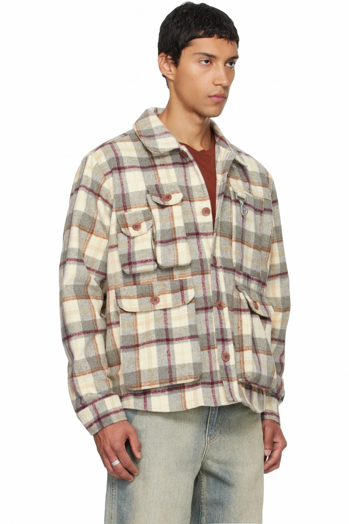 Gray & Beige Milled Flannel Cargo Button Down Shirt