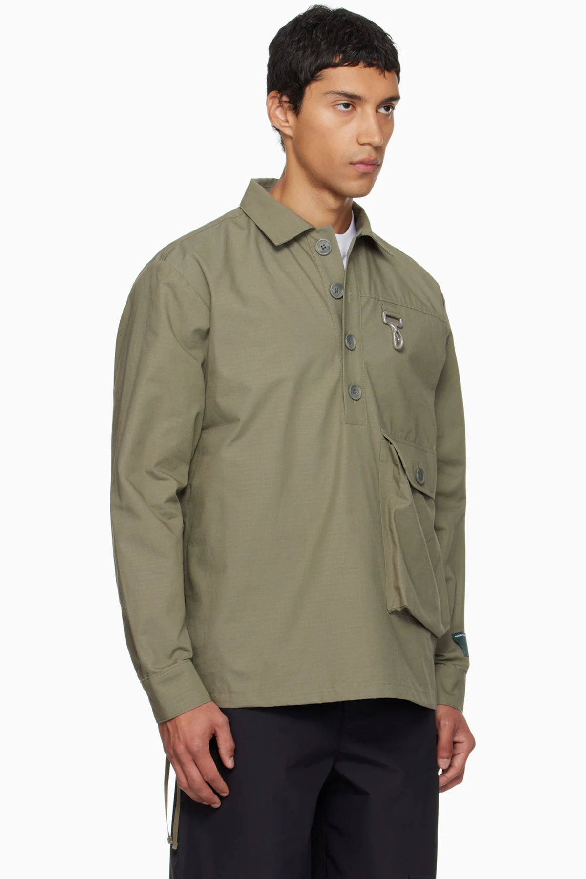 Khaki Cotton Ripstop Pullover Cargo Shirt